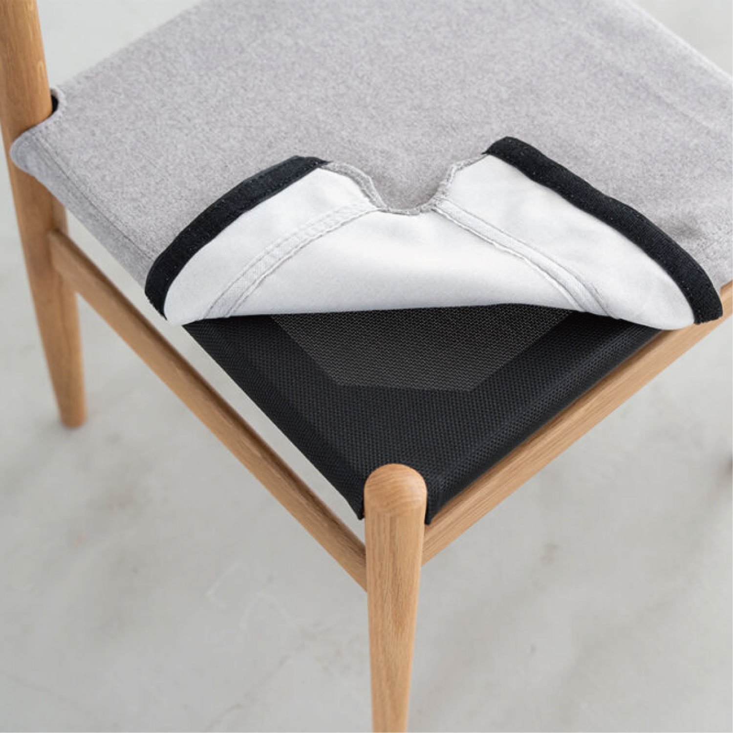 無駄な要素を省いた細身のラインで、軽さと座り心地を追求したダイニングチェア。PVCのカバーを外してメッシュの状態で使えば、座面の通気性も良くモダンな雰囲気に変わります。