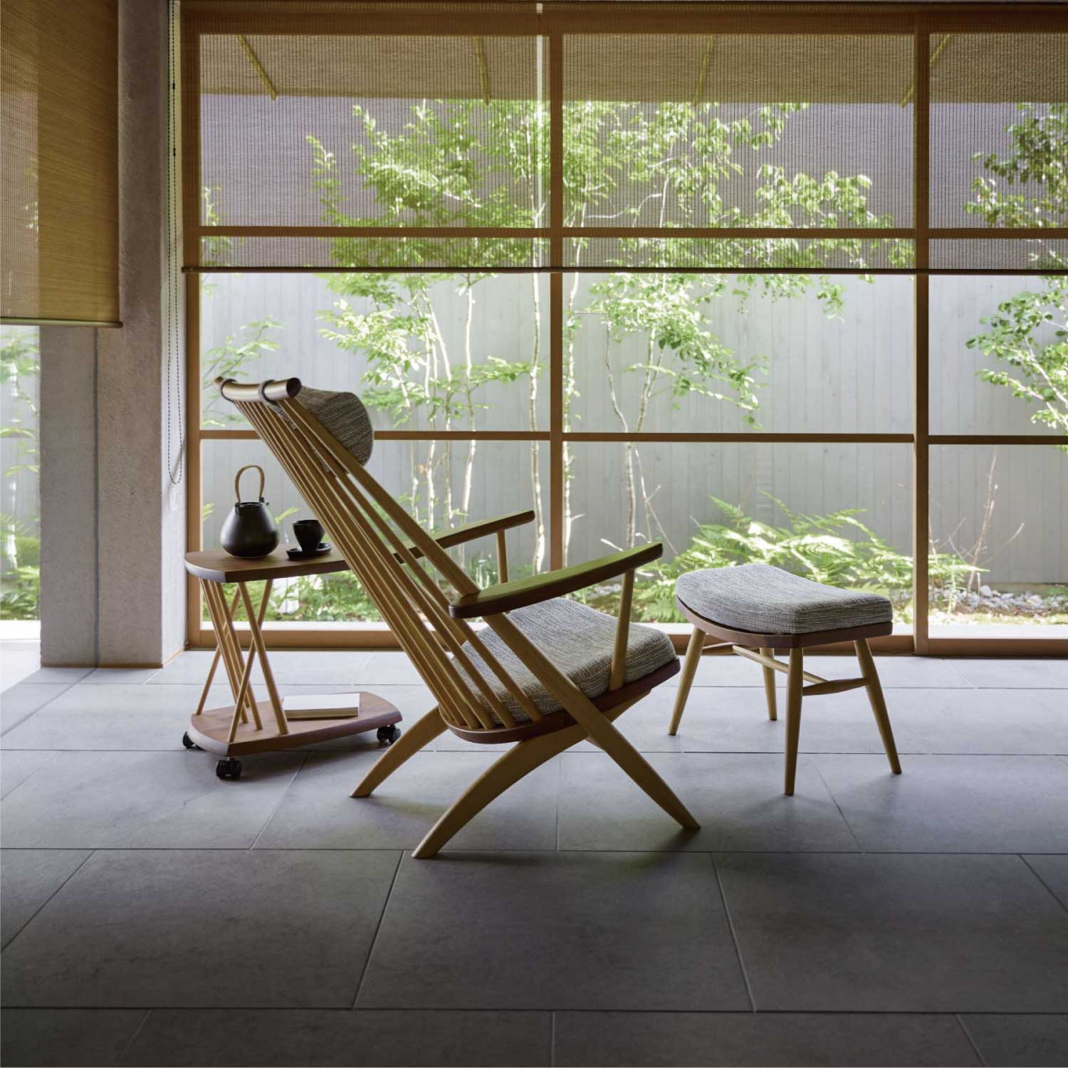 こちらのイージーチェアと同シリーズのオットマンもございます。