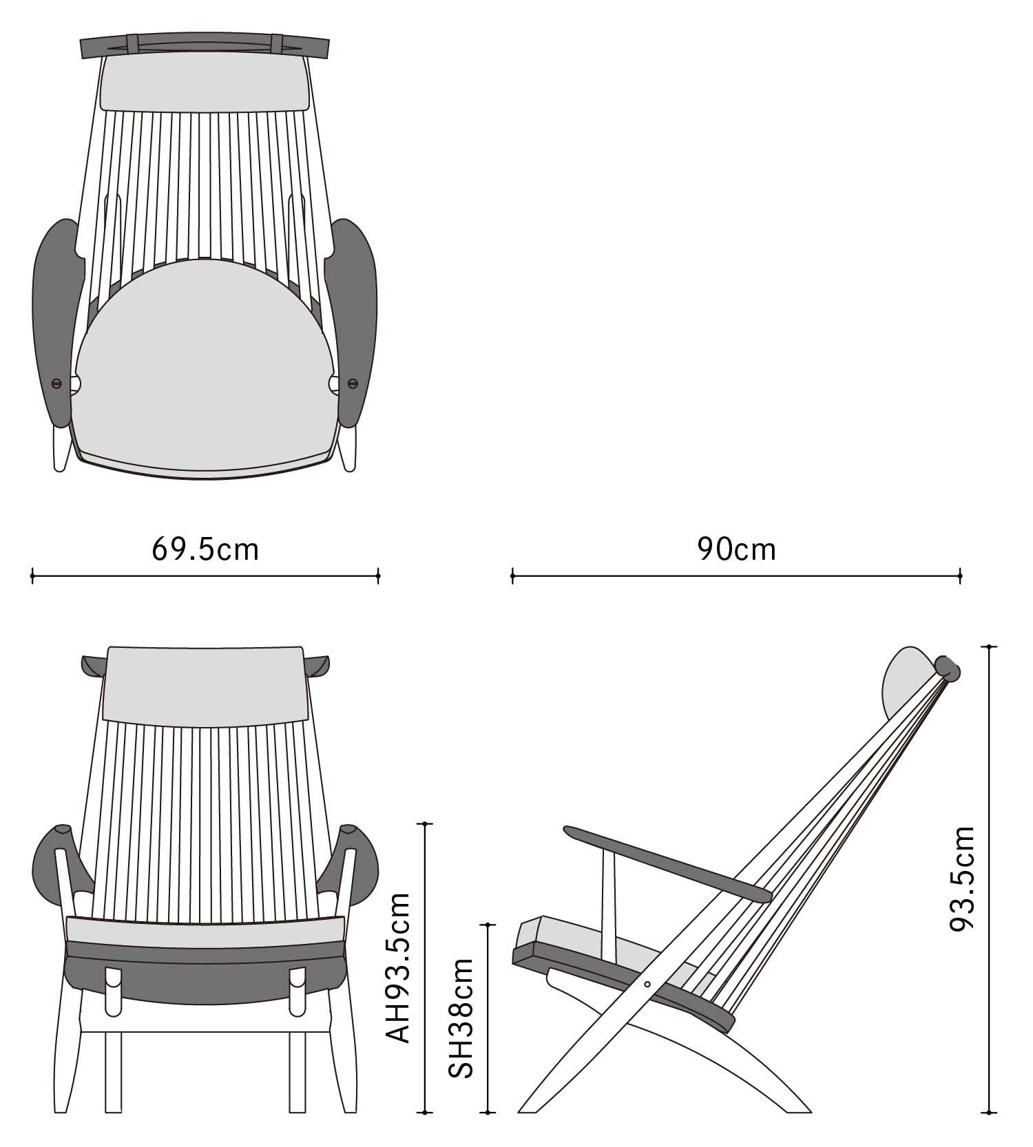| サイズ | W69.5 × D90 × H93.5cm | SH38cm | AH59.5cm |