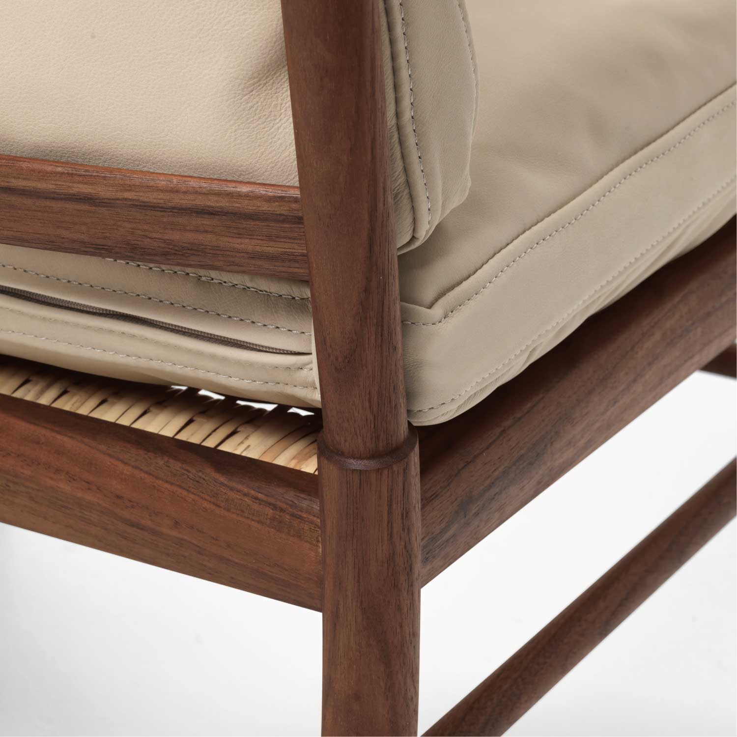 また、ヴァンシャーならではの、洗練されたディテールもこのソファの大きな特徴となっています。シンプルで軽快なフォルムを構築する、繊細さを強調した細く流麗なフレーム。各パーツがバランスよく支えあい強度を創り出す優れた構造となっています。中央部を二重の脚にするなど、耐久性を考え抜いたソファと言えます。