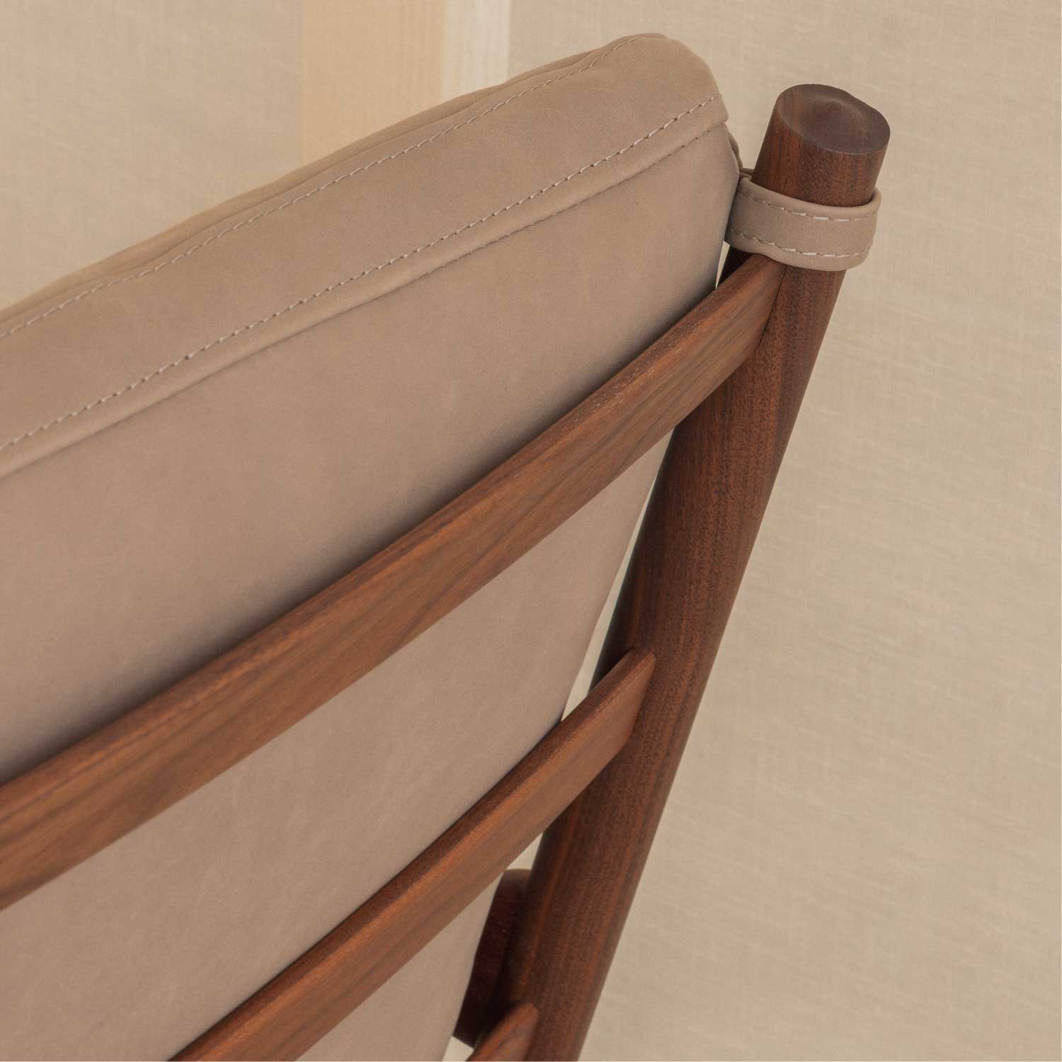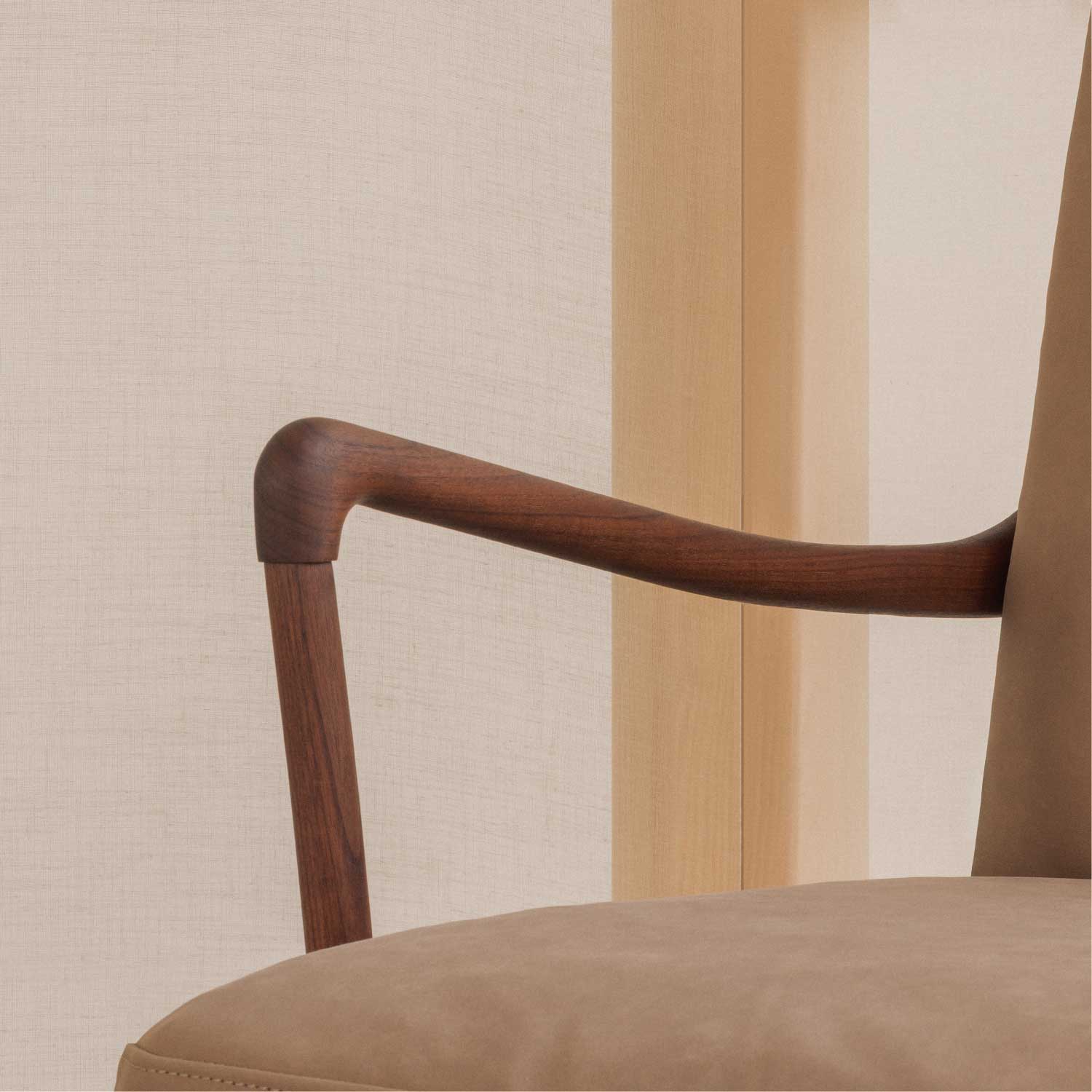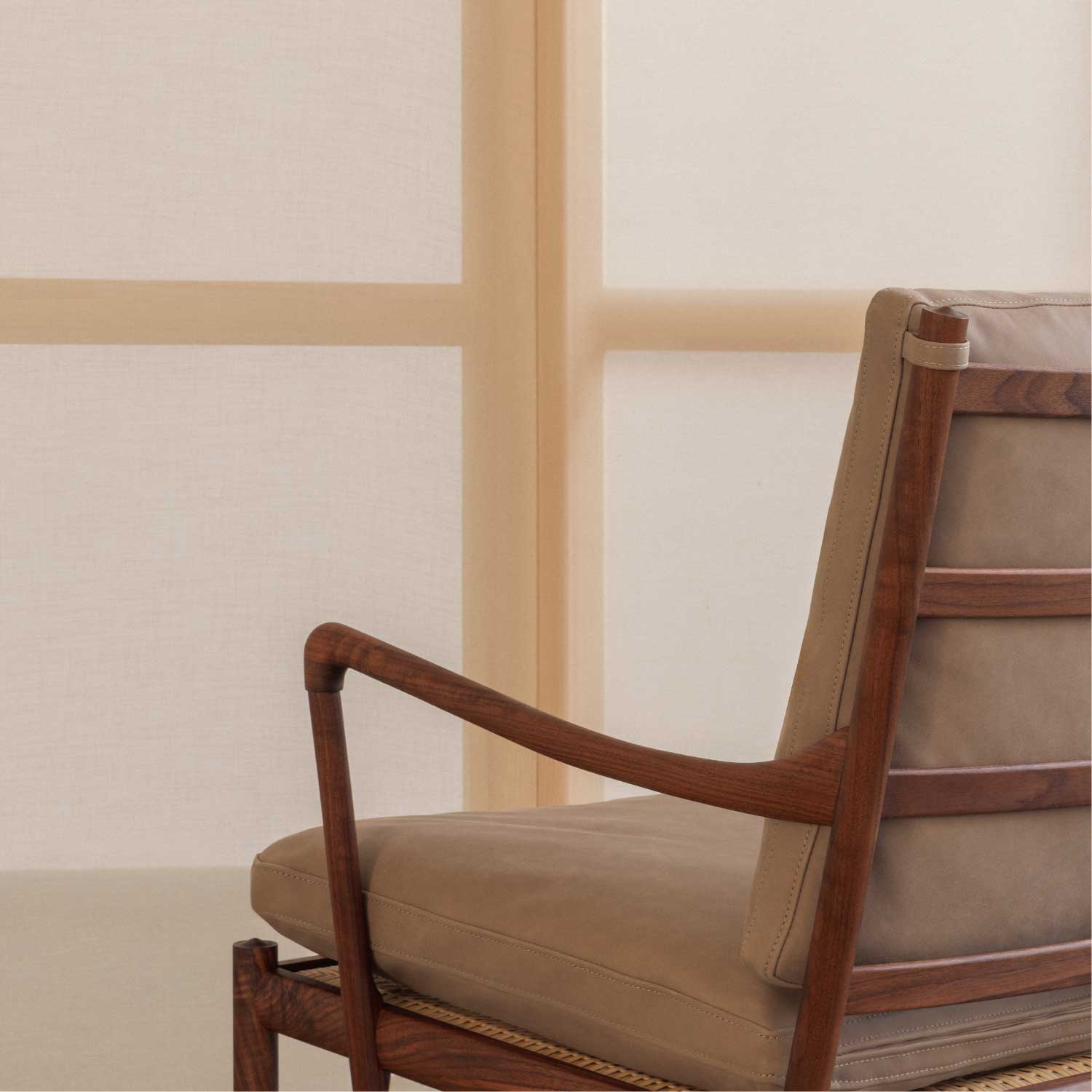 ミニマリスト、機能主義者と評価されるオーレ・ヴァンシャー、そのデザインには、洗練された細いラインが多く見られます。コロニアルチェアもその一つ。細く優雅なフレームですが、考え抜かれた構造により、優れた強度を創りだしています。洗練された曲線を描く特徴的なアーム。先端で真下にカーブさせる、ヴァンシャーらしい意匠となっています。丸棒状の前脚と後ろ脚。後ろ脚を若干カーブさせることによって、椅子に安定性を与え、優雅な傾斜のあるシルエットを創り上げています。