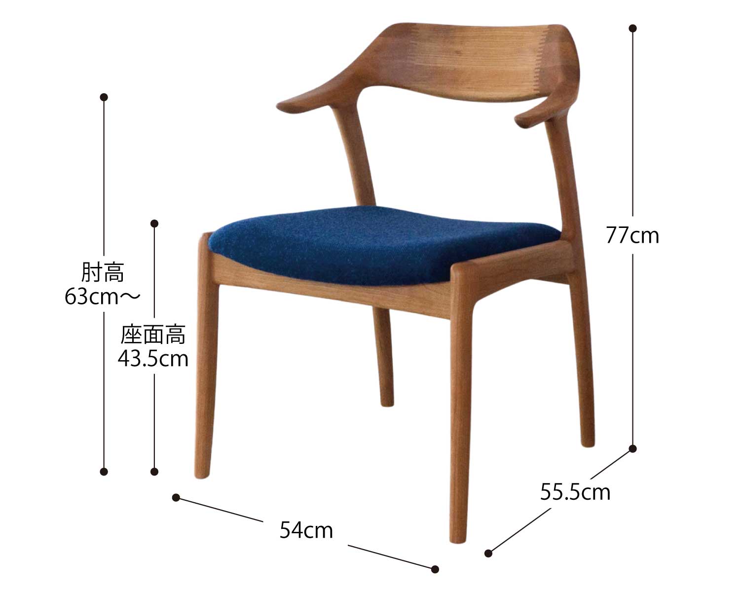 サイズ | W54 × D55.5 × H77cm | SH43.5 | AH63cm~ |