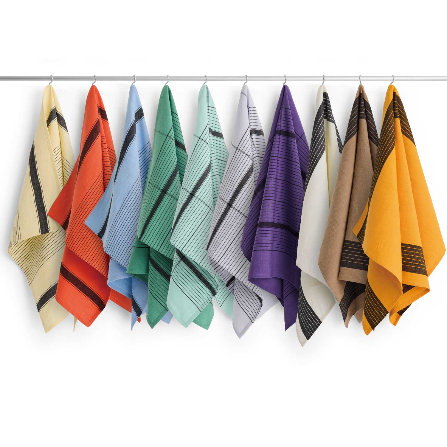 丈夫なリネンコットン生地を使用したLINEAR TEA TOWEL。フレッシュなカラーと現代的なグラフィックを組み合わせた、機能的かつ見た目もユニークなキッチンの必需品です。さまざまなデザインを取り揃えており、組み合わせてキッチンを彩り豊かに演出することができます。