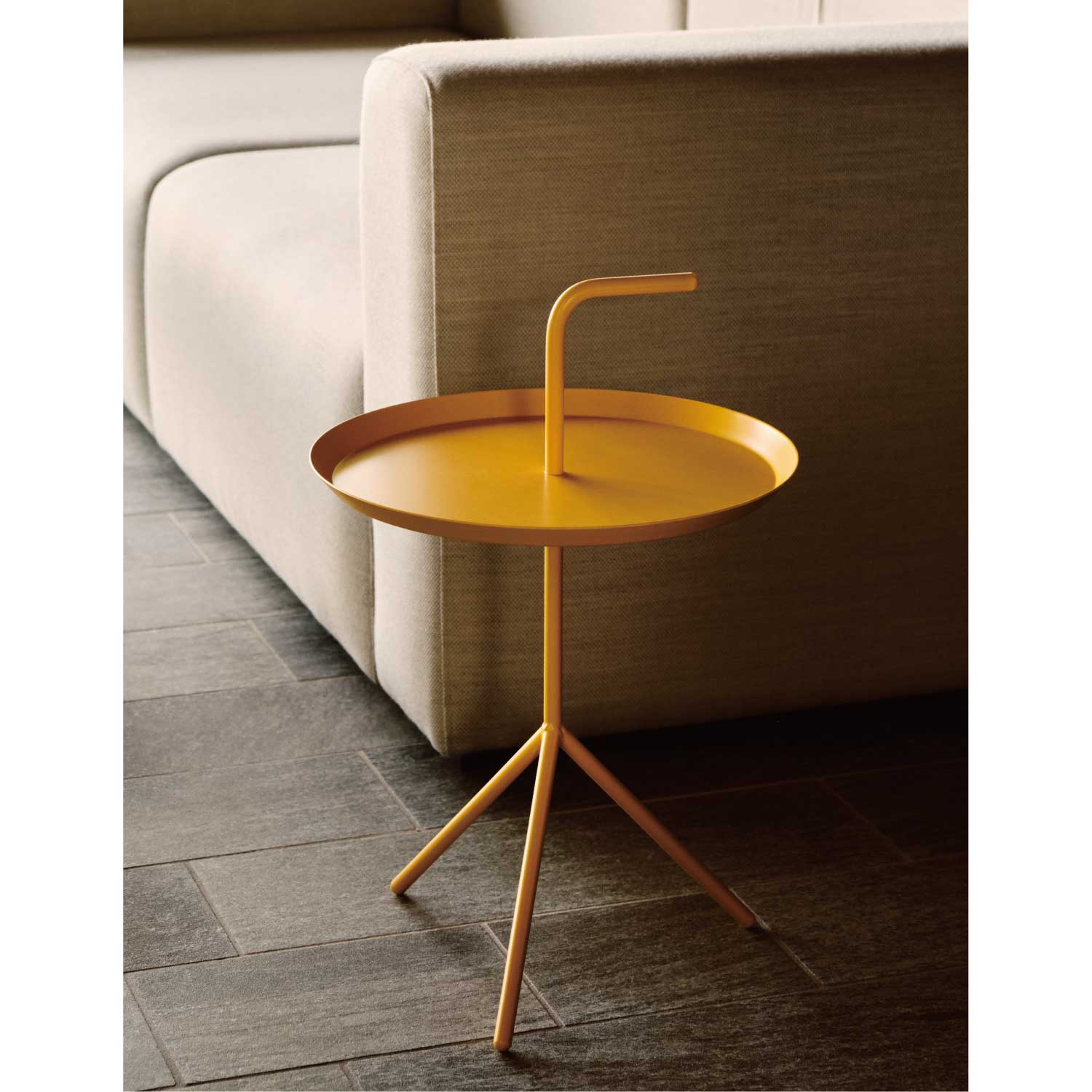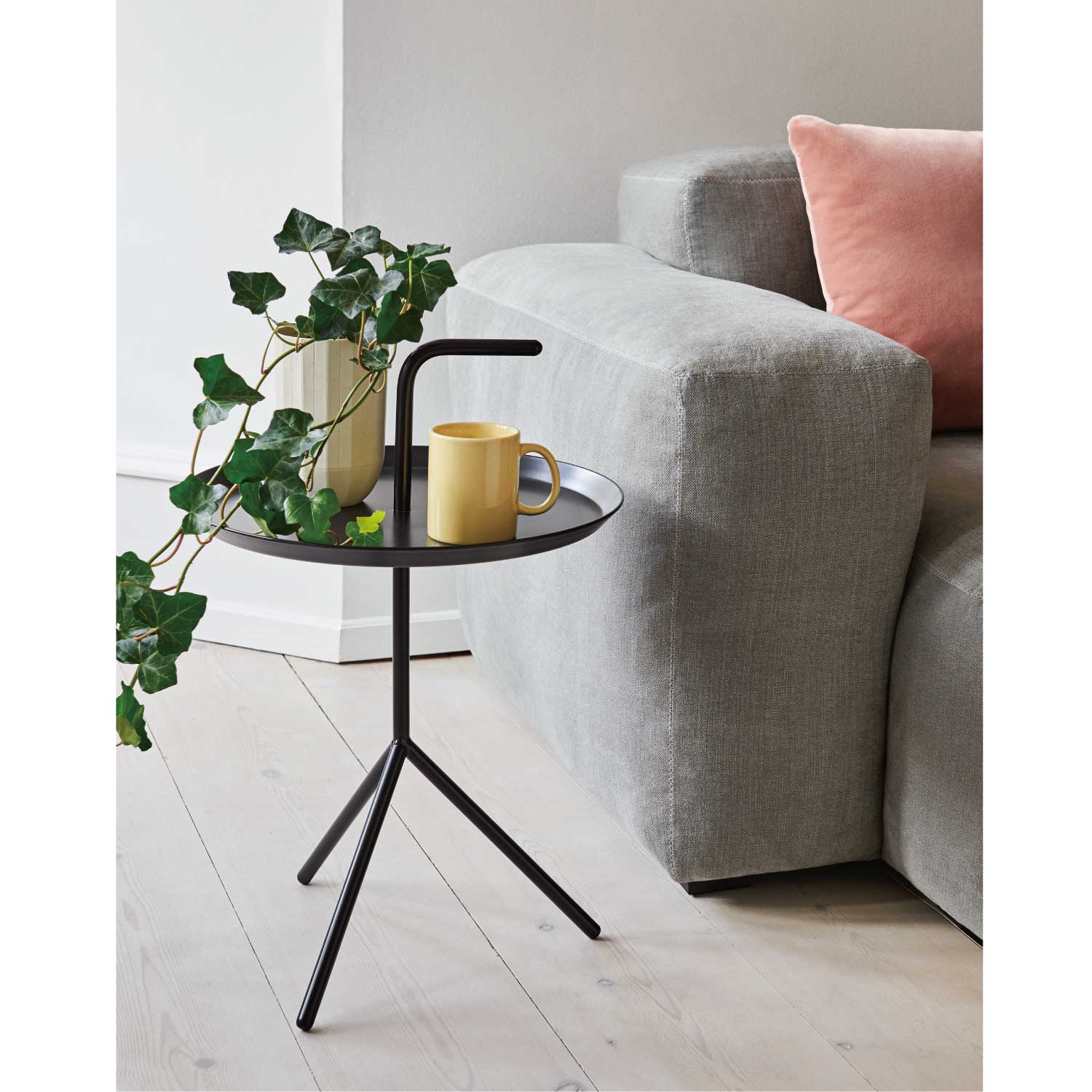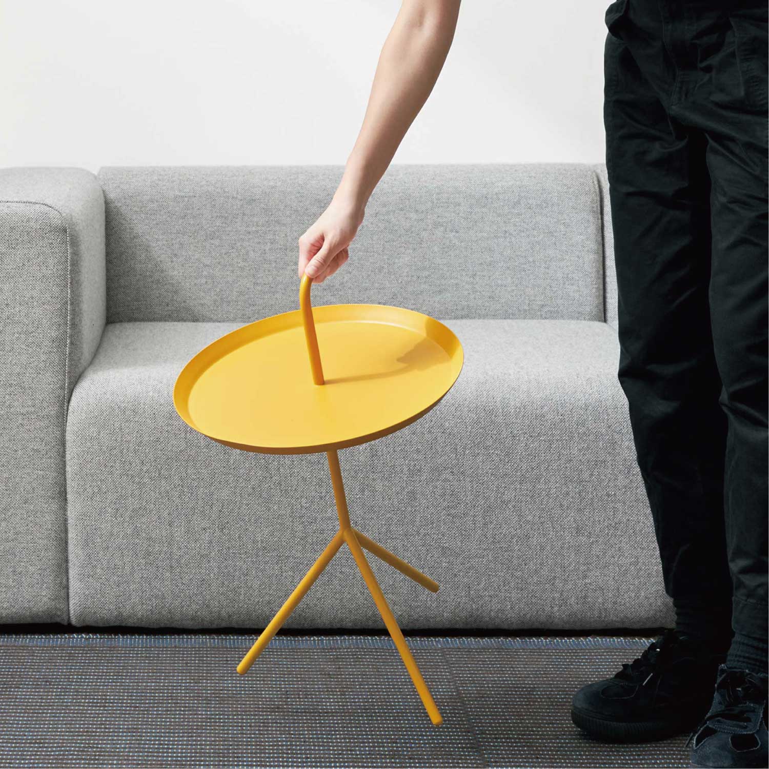 「Don’t Leave Me(置いていかないで)」と名前が付けられた、デザイナー トーマス・ベンゼンによるハンドル付きポータブルテーブル。部屋から部屋へ楽に移動できるDLMがあれば、リビングはもちろん、窓辺や寝室、バルコニーなど、その日の気分に合わせて好きな場所でリラックスして過ごすことができます。片手で楽に持ち運ぶためにつけたトレイの上のハンドル、軽やかさと美しいフォルムを保ちながらも安定感を生みだす3本の脚。置いてあるだけで絵になるユニークなデザインは、使う人のことを考えた様々な工夫から生まれました。読書をするときは傍に置いてコーヒーテーブルに、また一輪挿しを置けば空間が華やぐオブジェに。DLMと一緒に、もっと自由に、もっとリラックスした時間をお過ごしください。