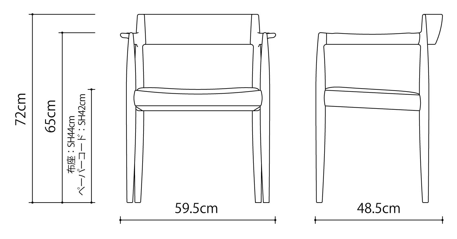 サイズ | W59.5 × D48.5 × H72cm | 布座SH44cm / ペーパーコードSH42cm | AH65cm |