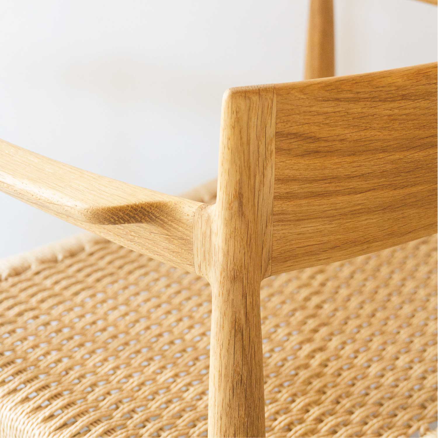 デンマークのデザイナー、カイ・クリスチャンセンとの協働から生まれたアームチェアです。2011年に復刻されたサイドチェアをもとに改良を重ね、より安定感と快適さを追求しました。無垢材の美しいフレームがやわらかく体を包み、広めのアームが自然に肘を支えます。上質な素材と確かな造りが調和した、“マスター”の名にふさわしい風格をもつ一脚です。