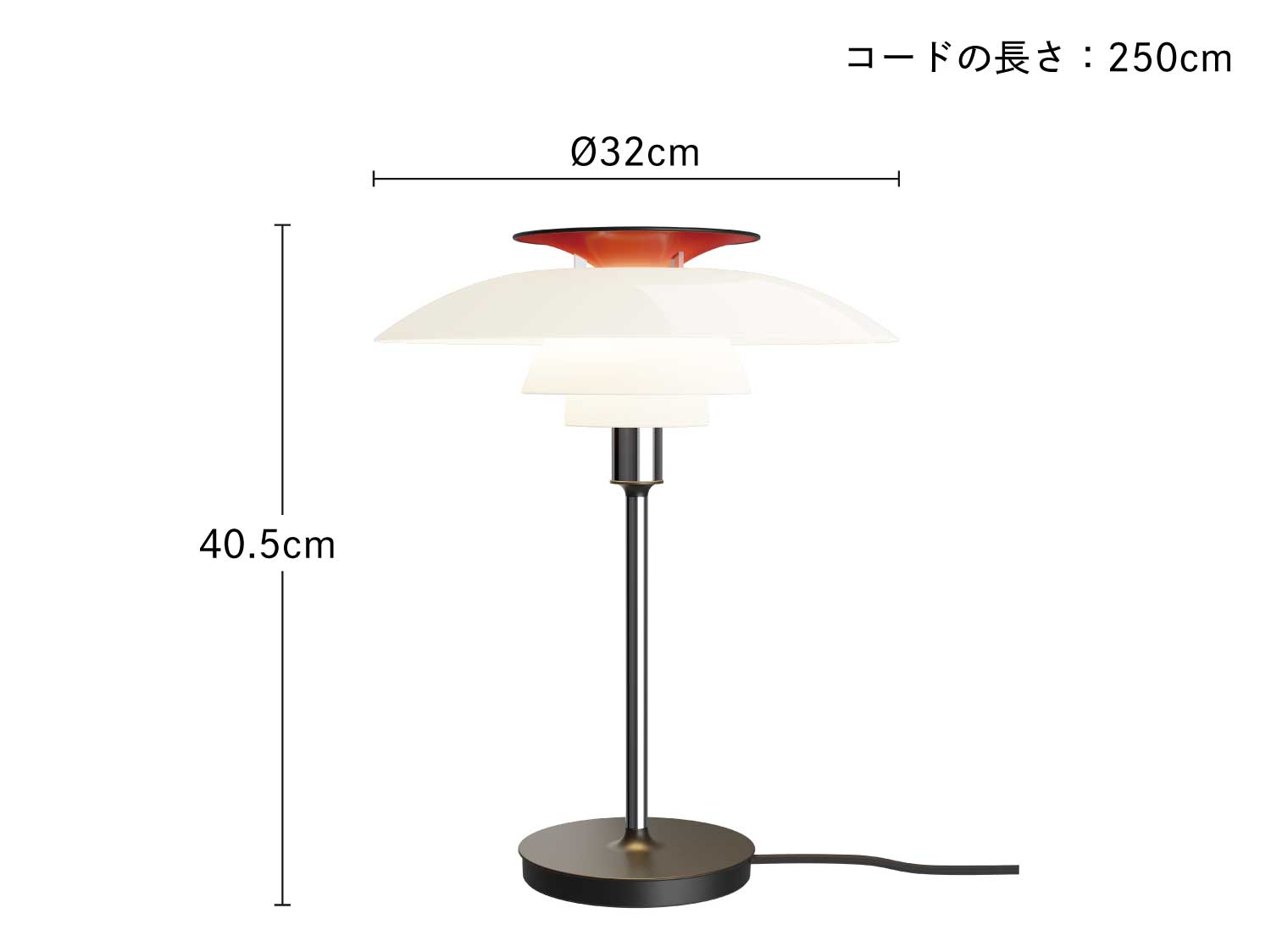 PH 80 テーブルランプは、拡散光と反射光を放ち、光の多くは下方に向けられます。乳白色のアクリルシェードは、快適なアンビエントライトを提供します。クロームメッキのタイプは、赤いトップ・リフレクターが光に暖かみを加えます。ホワイトタイプは、白いトップ・リフレクターがクリーンでエレガントな印象をもたらします。