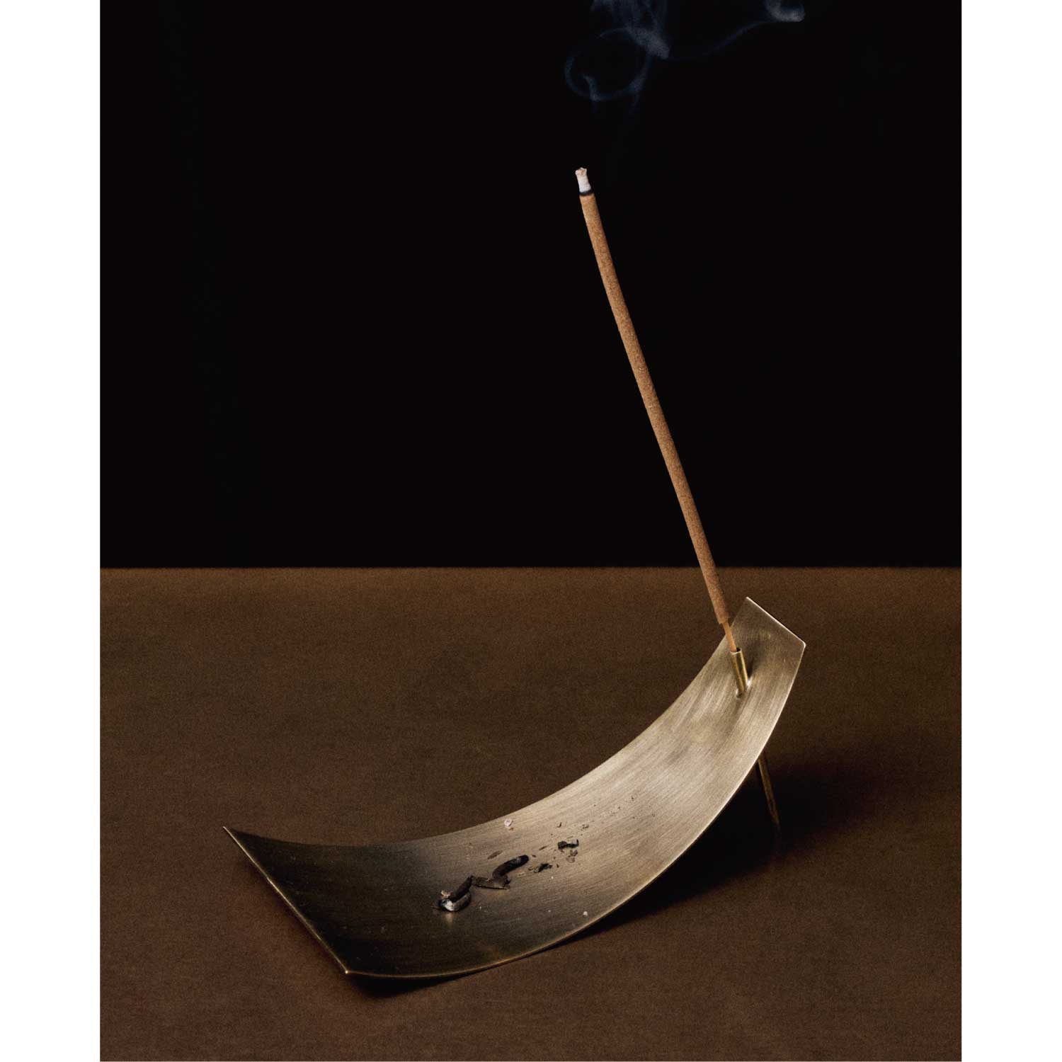 メッキや塗装などをしない、無垢の真鍮材を手加工して作られたバンブータイプのインセンススティック専用のスタンドです。真鍮の素地の風合いを活かす為、軽度に表面仕上げを施していますが、使い込んで行くうちに、徐々に色合いが濃くなっていき、独特の味わいが出て、真鍮本体の美しさが増してきます。