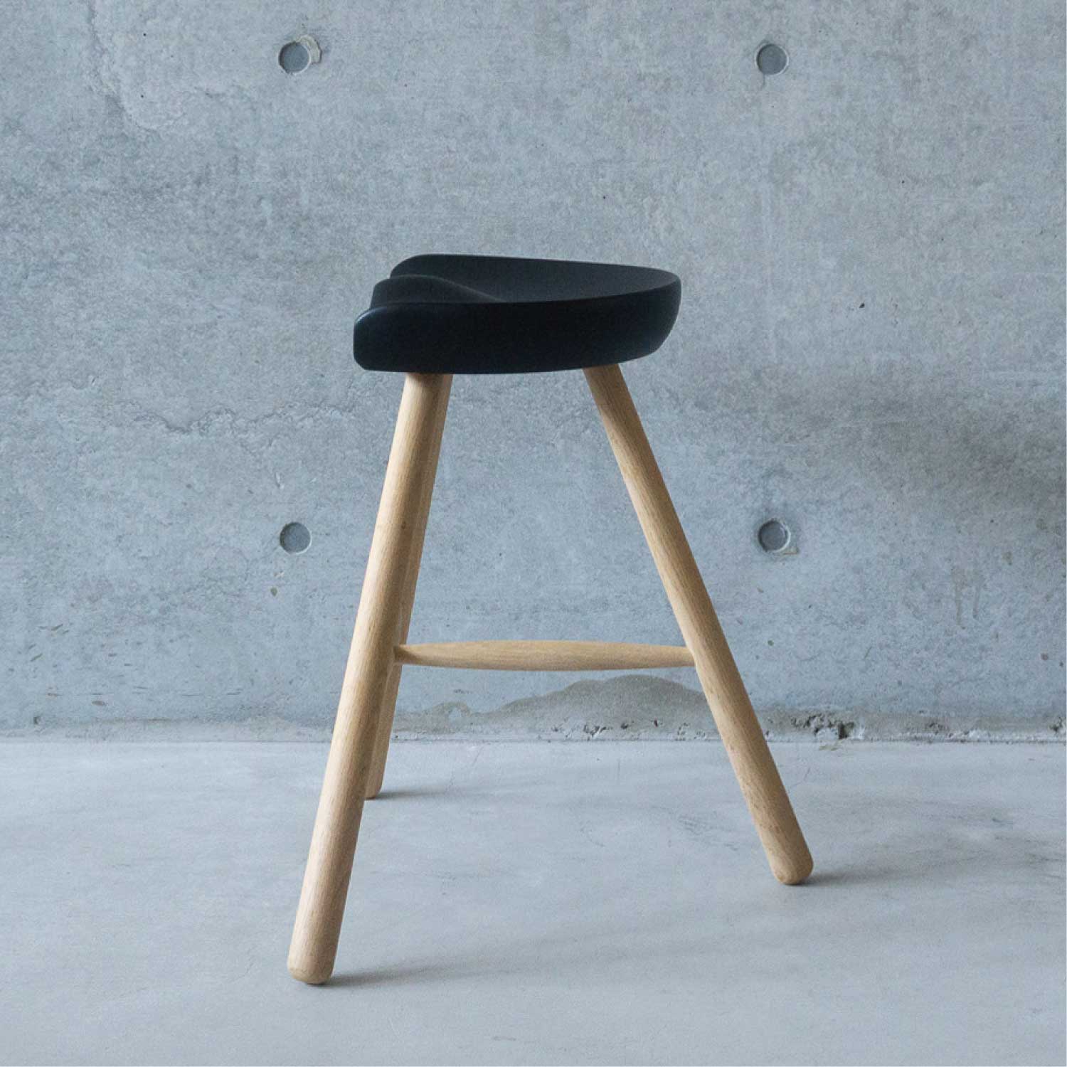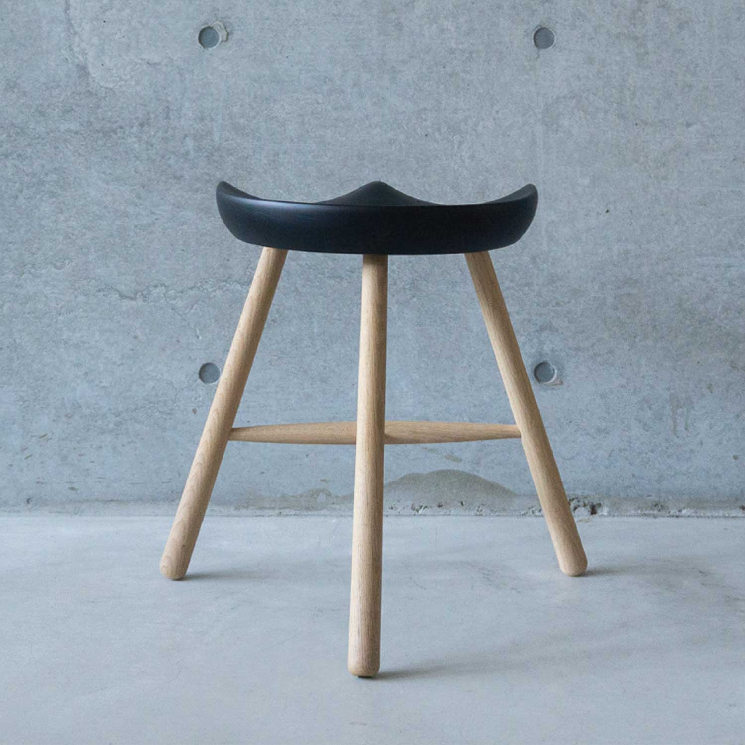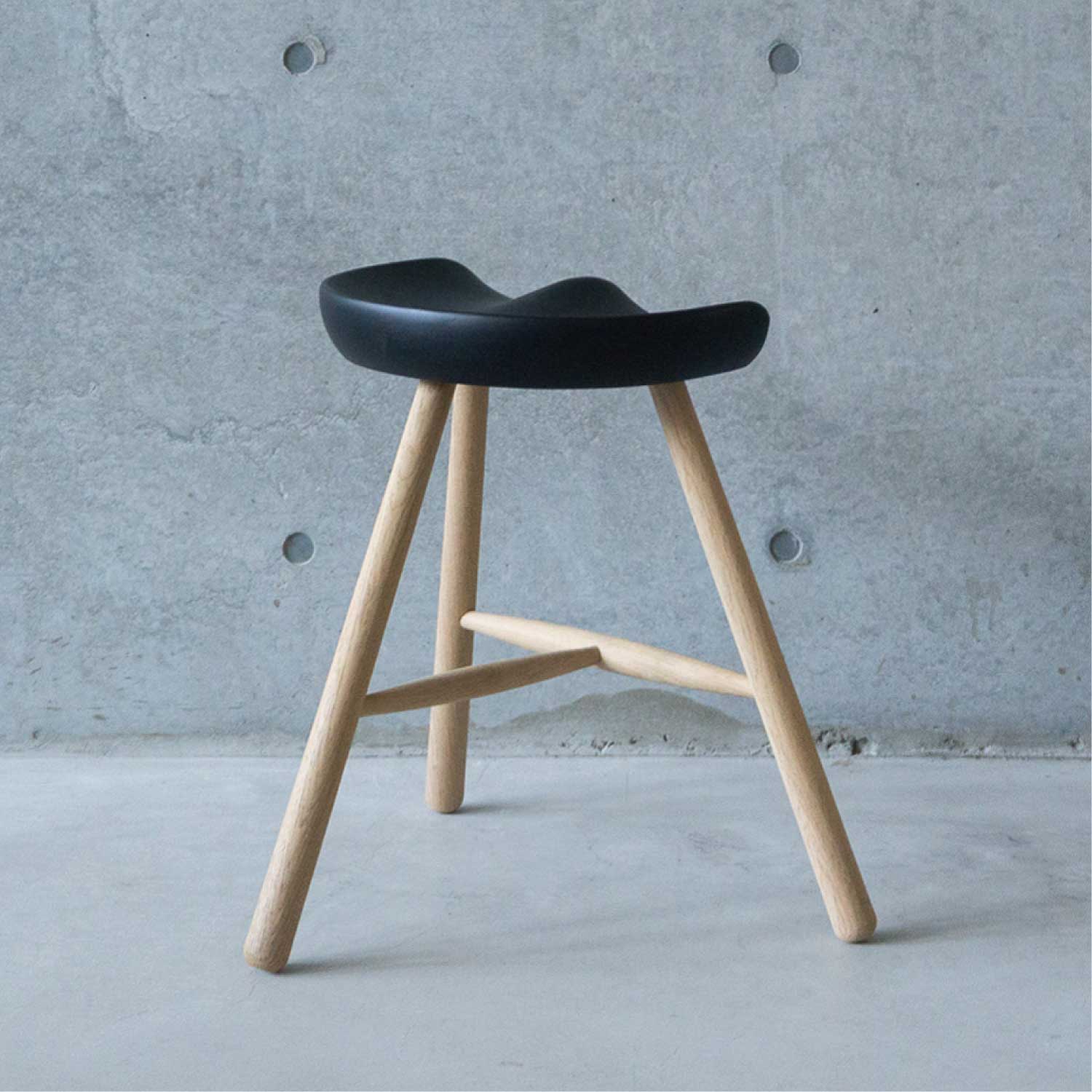 座面をブラックにし、通常ビーチ材で作る脚をオーク材で作った特別なシューメーカーチェア。(座面はビーチ材です)
