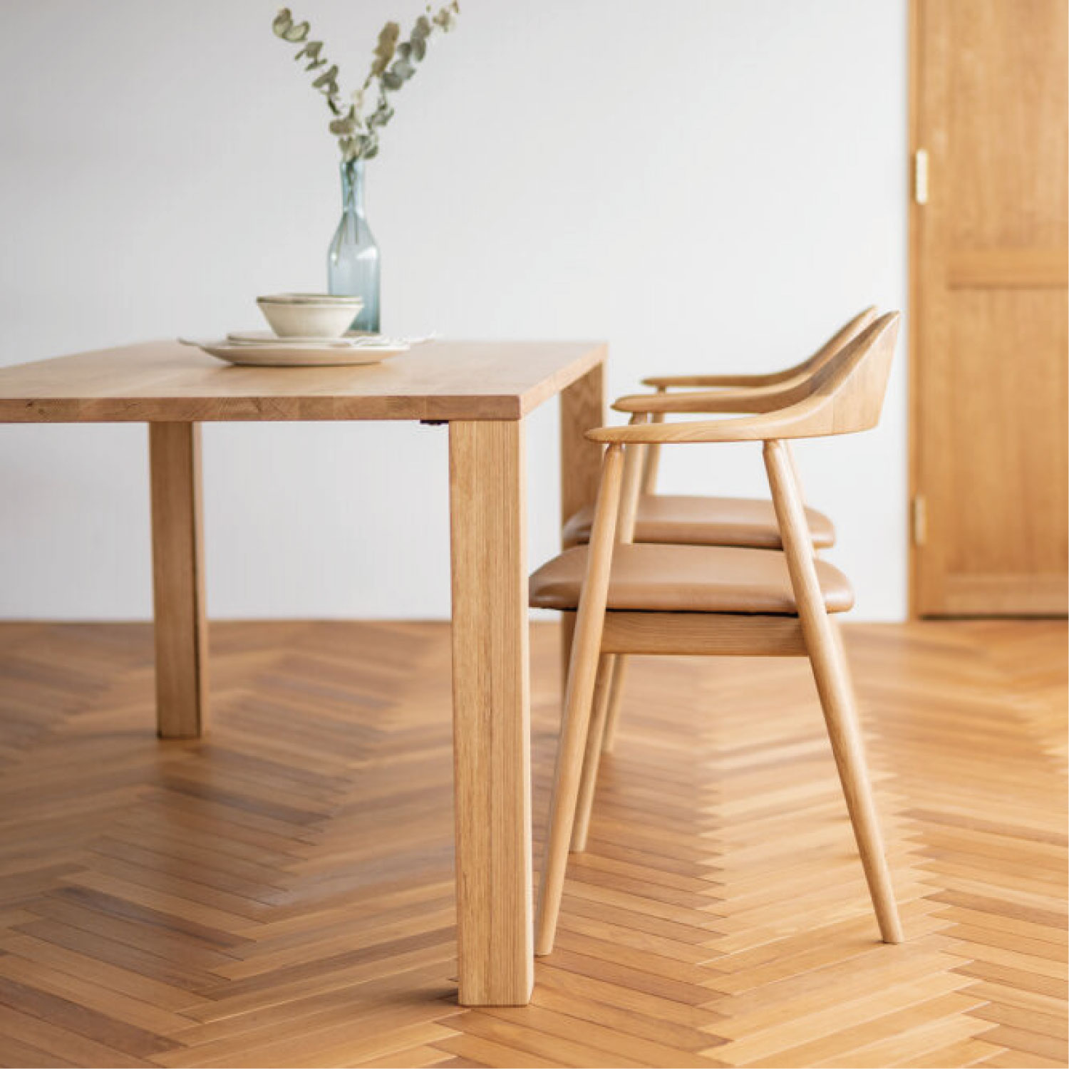 | 素材 | OAK:オーク無垢材、PVC、ウレタンフォーム WN:ウォールナット無垢材、PVC、ウレタンフォーム OAK:オーク無垢材、PVC、ウレタンフォーム |