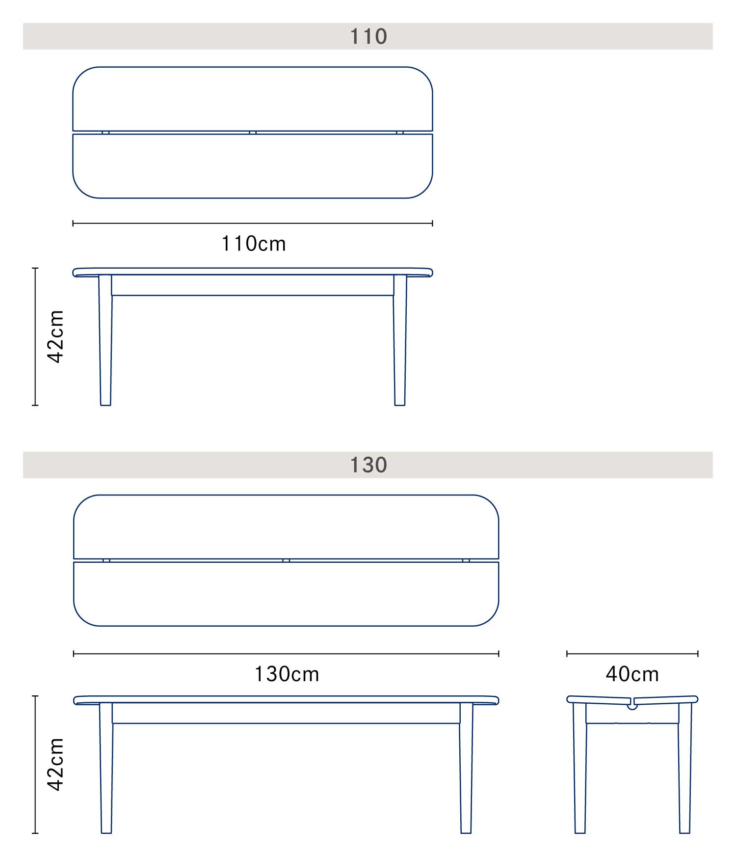 | サイズ | [ 110 ] W110 × D40 × H42cm [ 130 ] W130 × D40 × H42cm |