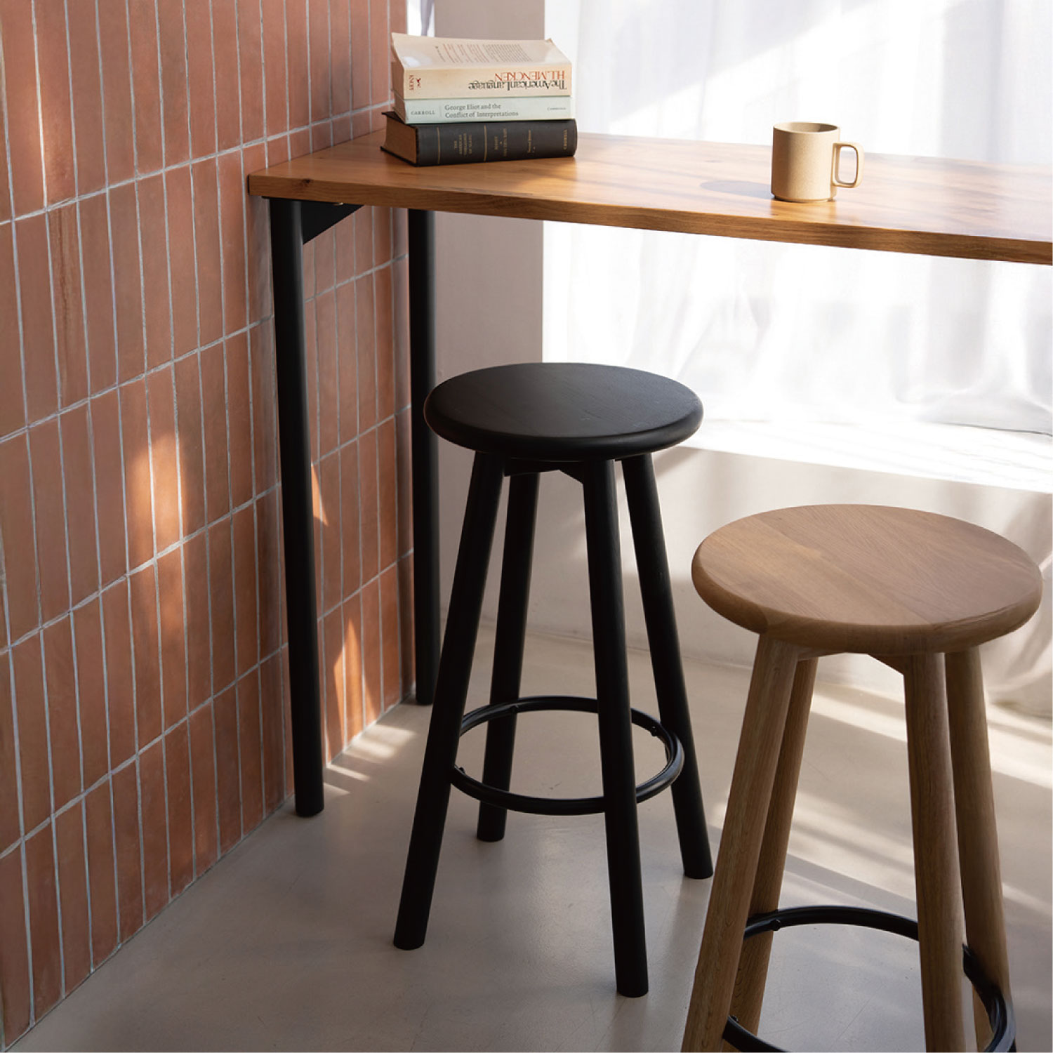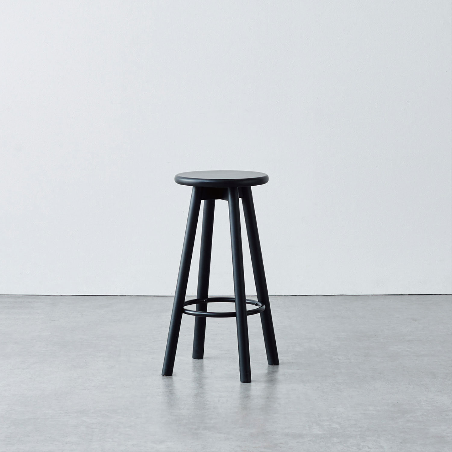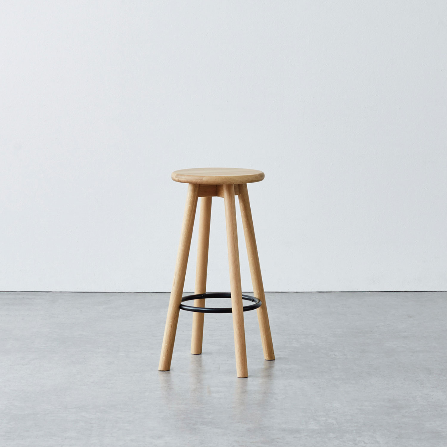 無垢材を使用した、丸みのある優しいフォルムのハイスツール。広がった脚のデザインと足置きにより、安定感があり快適に座れます。シンプルで使い勝手のよいデザインは、どんな空間にも馴染み、自宅はもちろん、飲食店やオフィスなど幅広いシーンで活躍します。