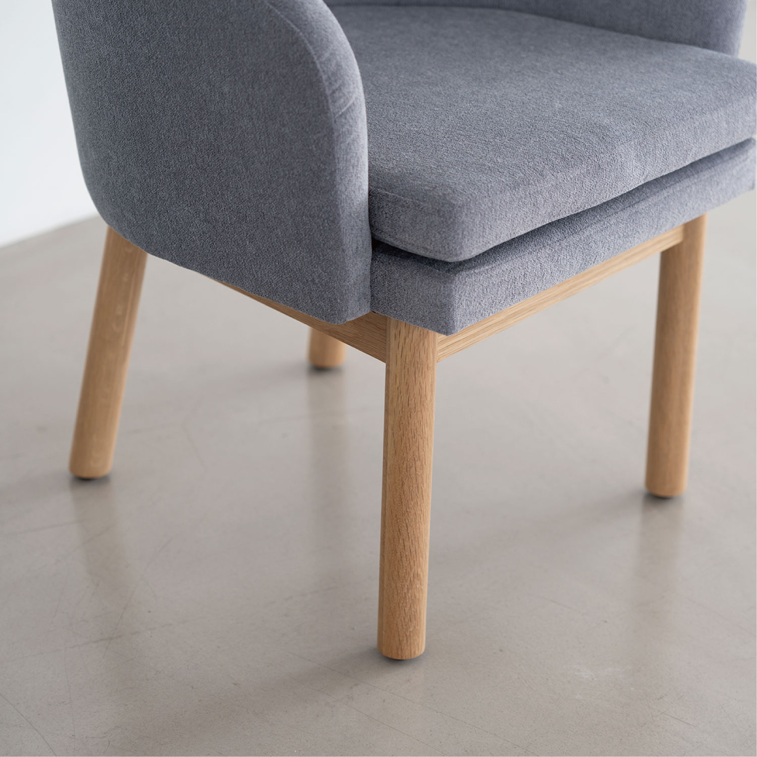 | 素材 | 本体:ファブリック(ポリエステル)、ウレタンフォーム、合板 脚部:オーク無垢材 |
