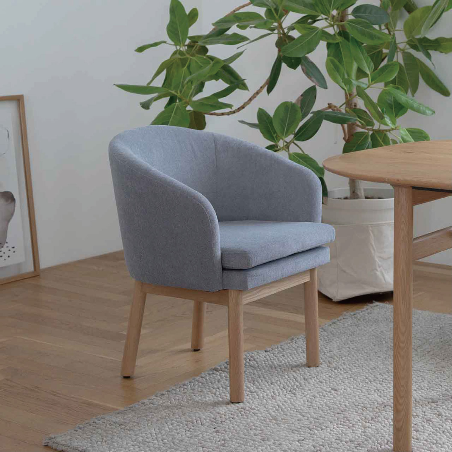 食卓でゆったりとくつろげるチェア。丸く優しいフォルムが、お部屋に柔らかい印象を与えてくれます。