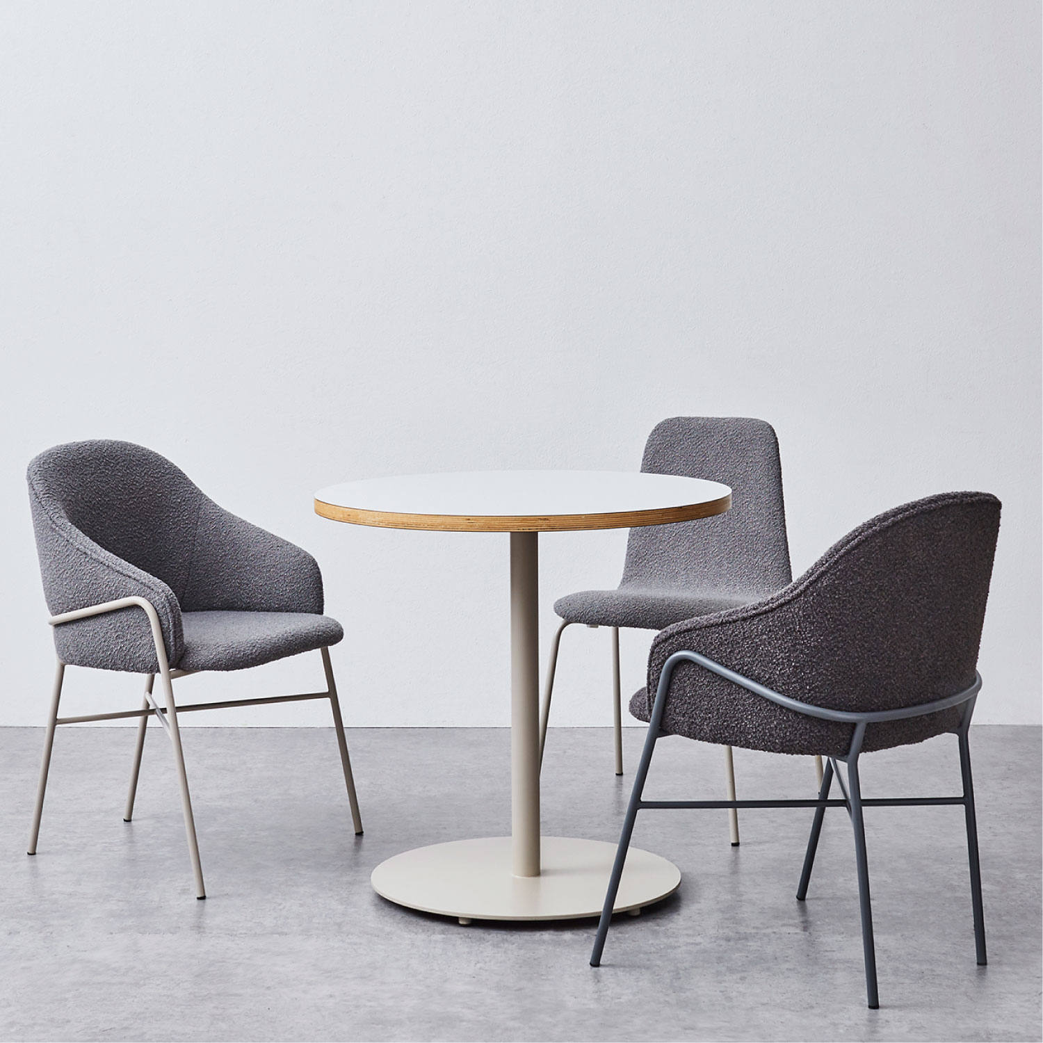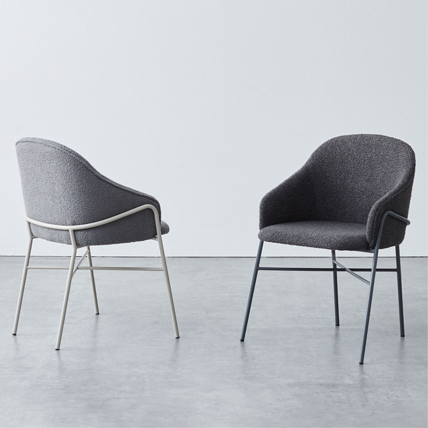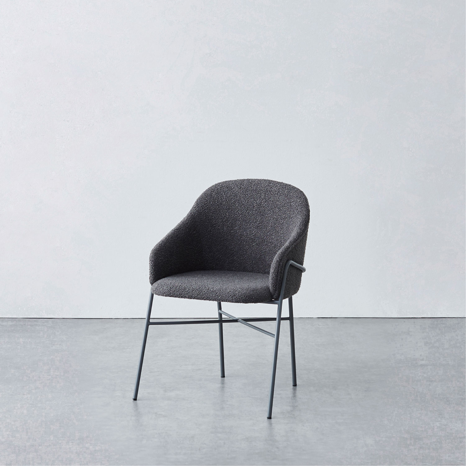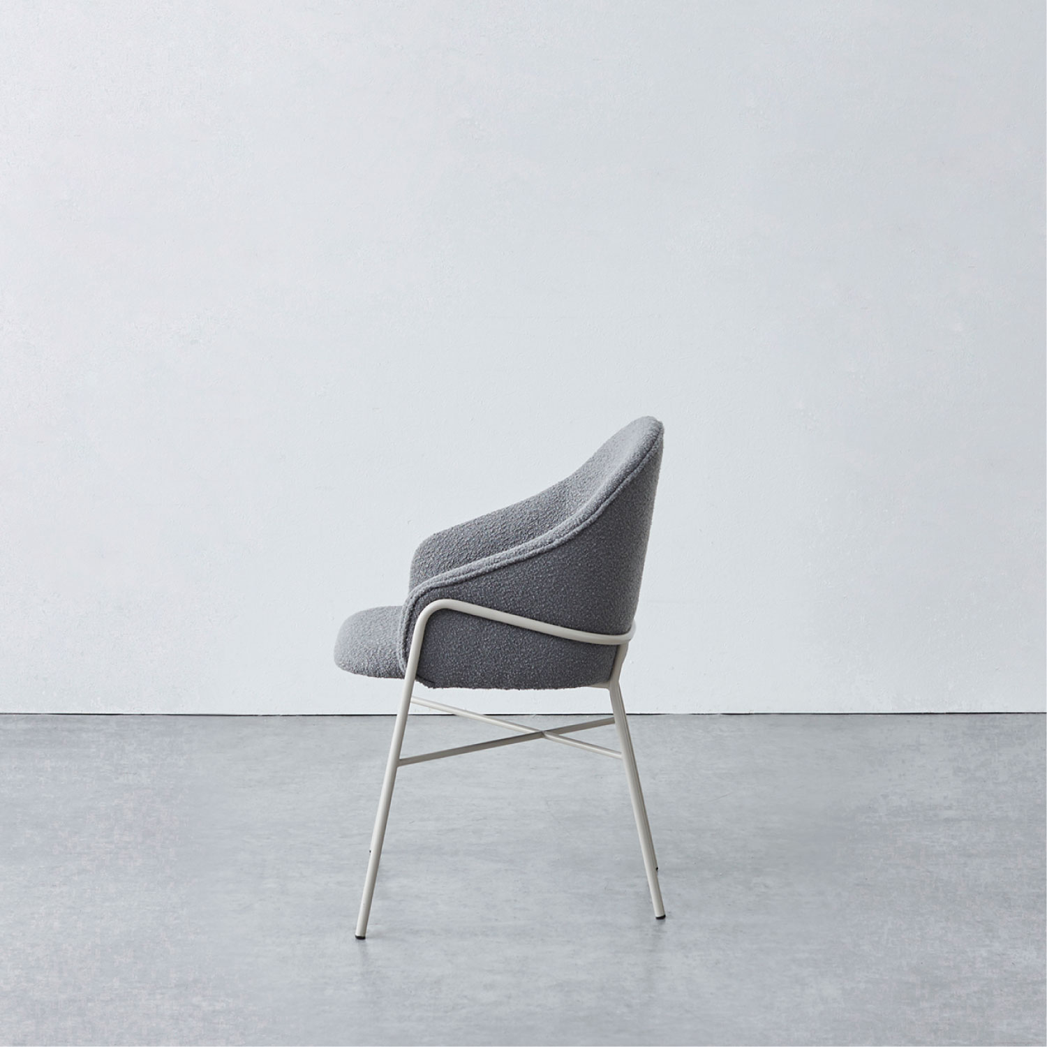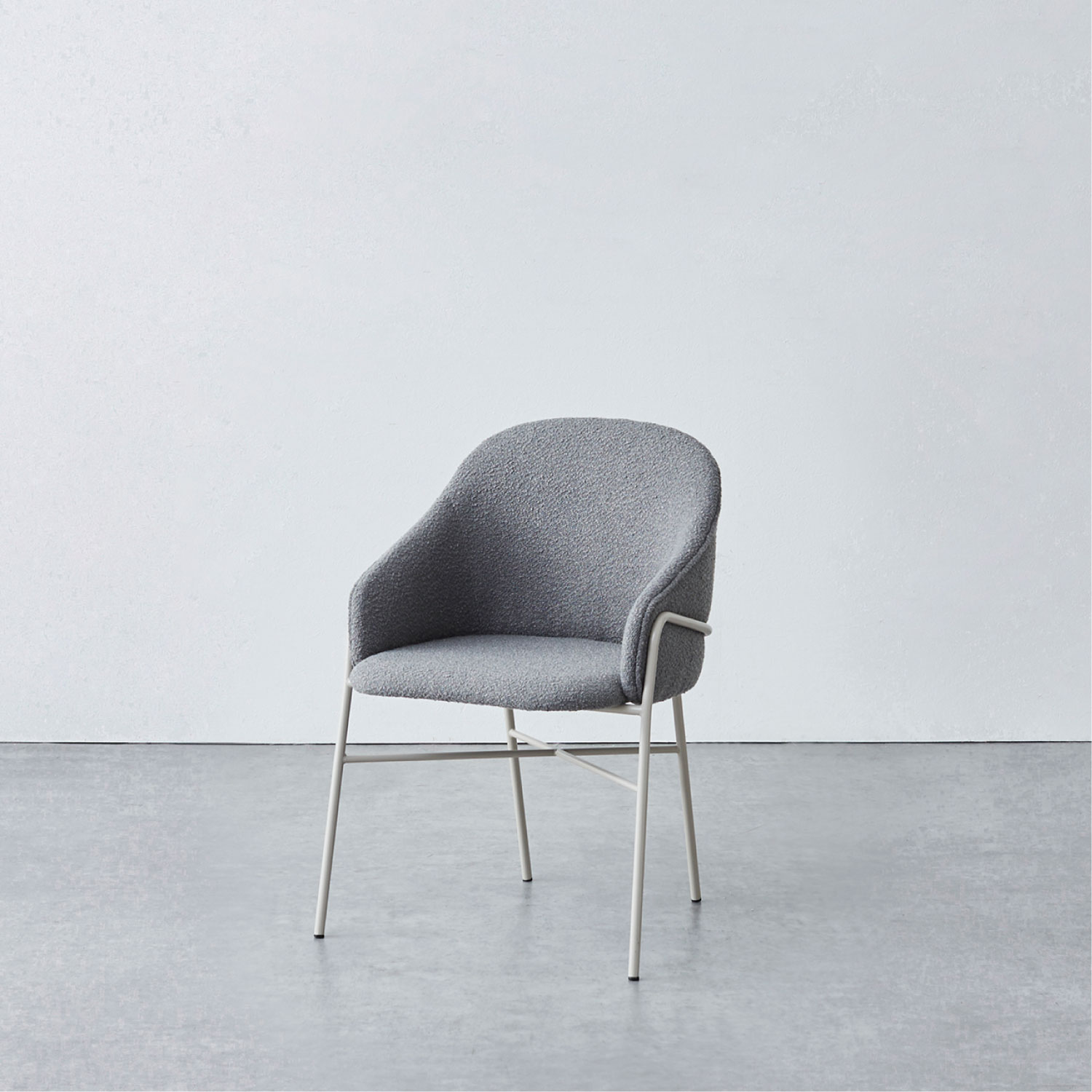 ゆったりと座れるアームチェア。ファブリックとフレームが同系色のワントーンカラーと、空間に馴染む主張しないデザインで、複数台並べてもシンプルで上品にまとまります。グレー系のカラーリングで、さまざまなシーンに合わせやすいチェアです。
