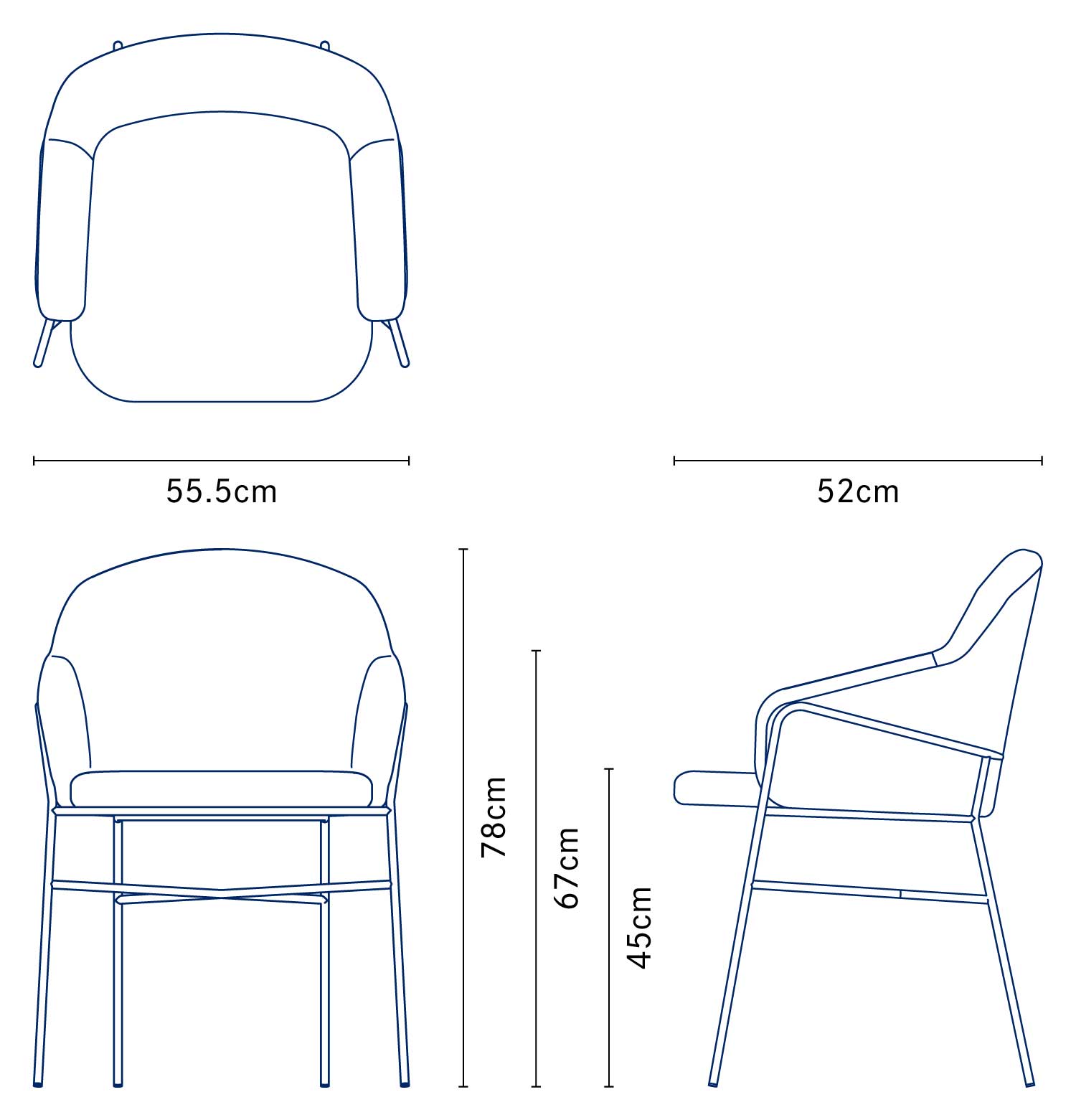 | サイズ | W55.5 × D52 × H78cm | SH45cm |