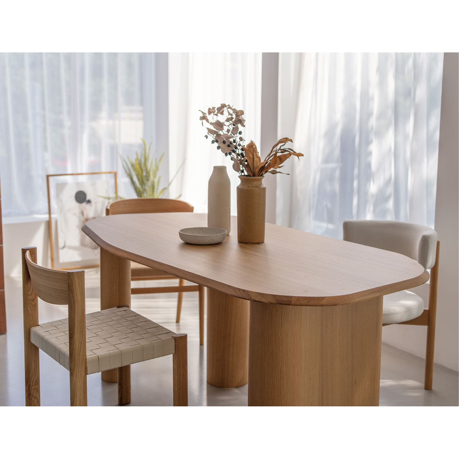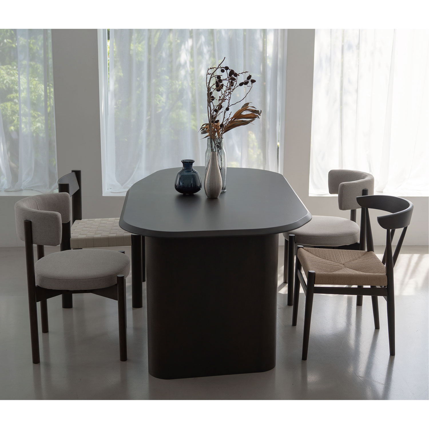ラウンドしたフォルムが特徴のダイニングチェア。座と背にクッション性があり、ゆったりと快適に座れます。丸いフォルムでダイニング空間を柔らかい印象にしてくれます。