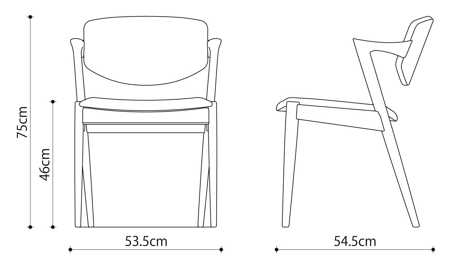 | サイズ | W53.5 × D54.5 × H75cm | SH46cm | AH67cm |