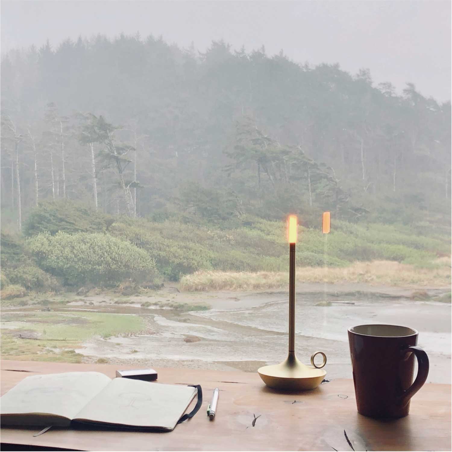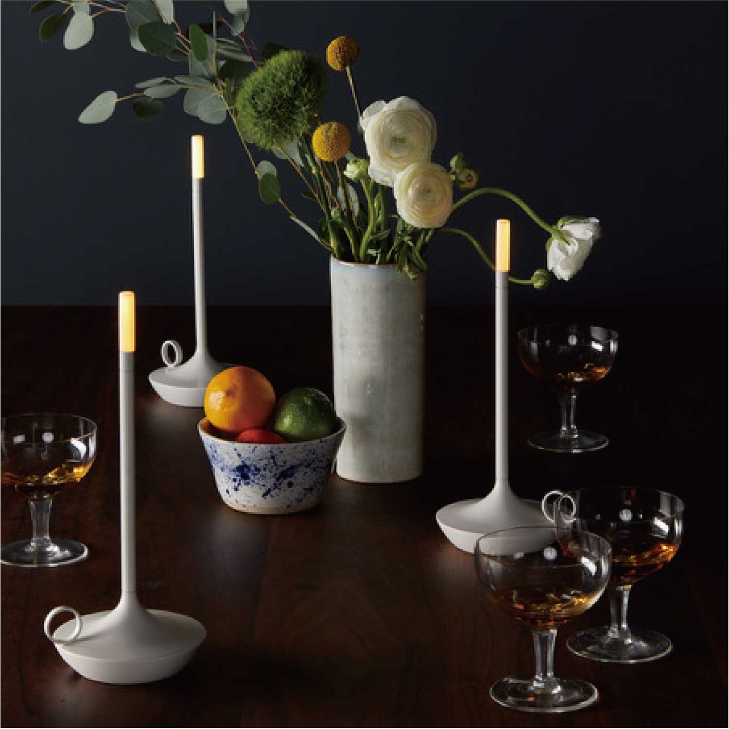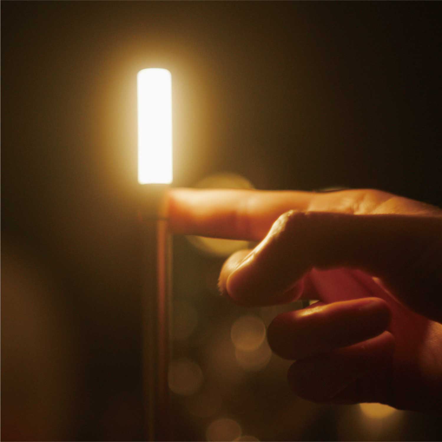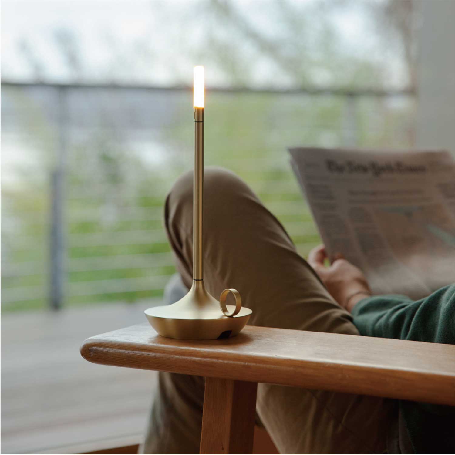 手持ちキャンドルホルダーのような上品なポータブルライトです。LEDモジュールの下を指でタッチすると3段階で調光します。カラーはゴールドとなります。