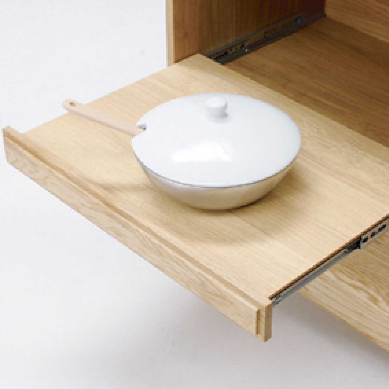 日々の使いやすさを追求したシンプルな収納。幅60cmのコンパクトサイズでありながら、レンジやケトルを置けるオープンスペースと、整理しやすい収納部を備えています。清潔感のあるデザインはキッチンにすっきりと馴染み、限られたスペースでも機能的に活躍します。
