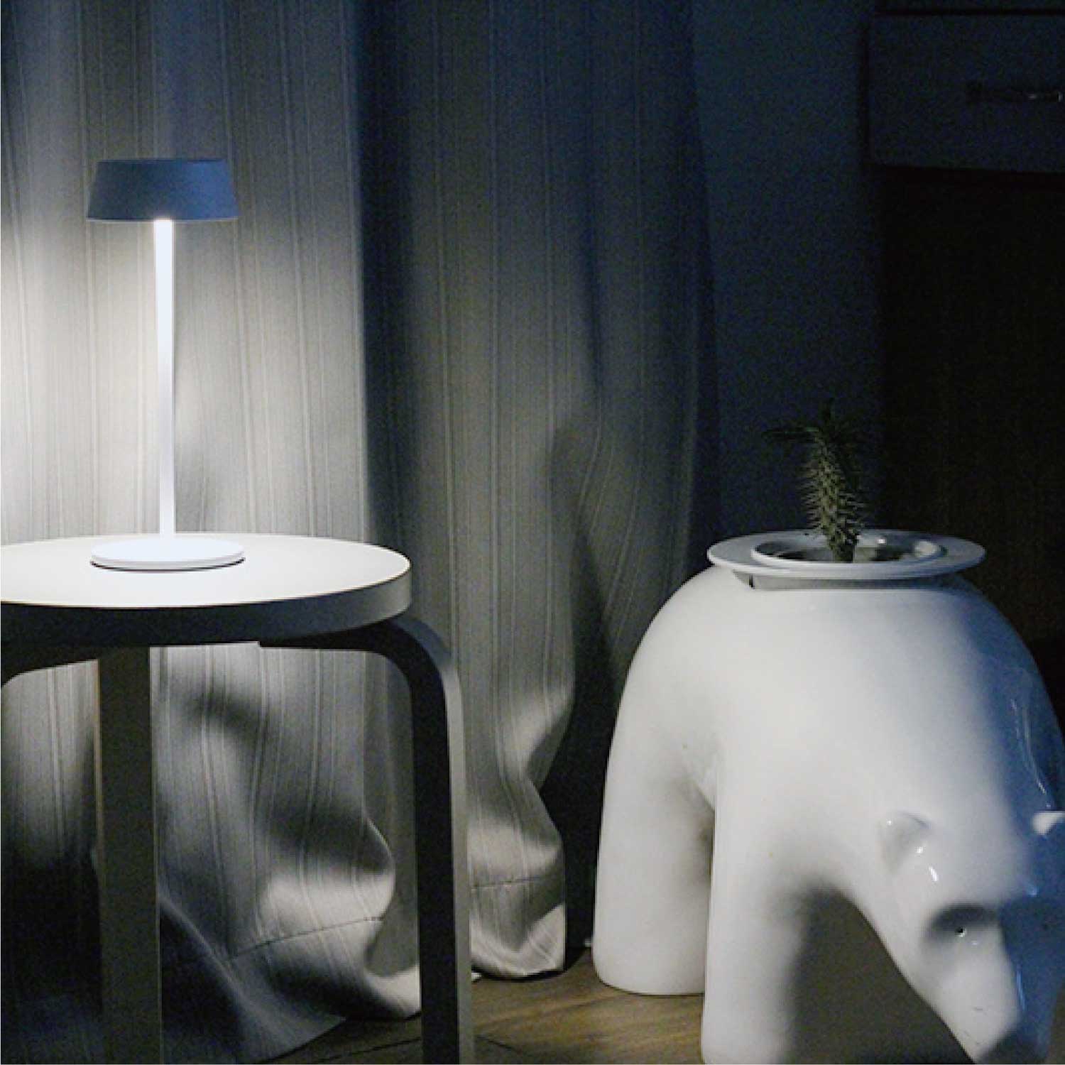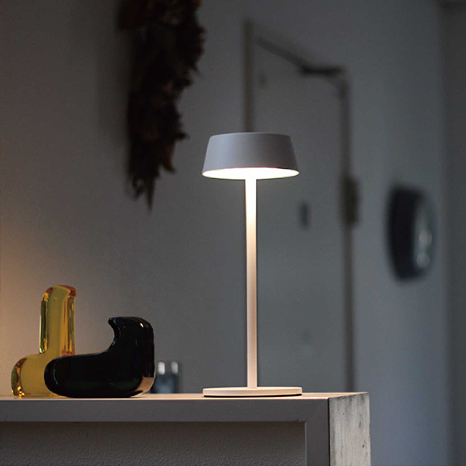 使う場所を選ばず、必要なときに手軽に置けるコードレススタンドライト。