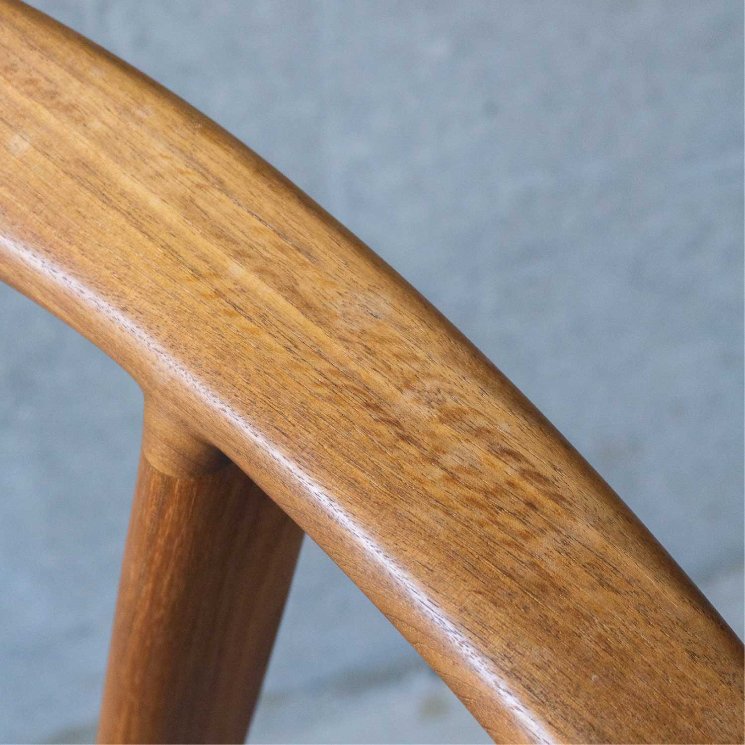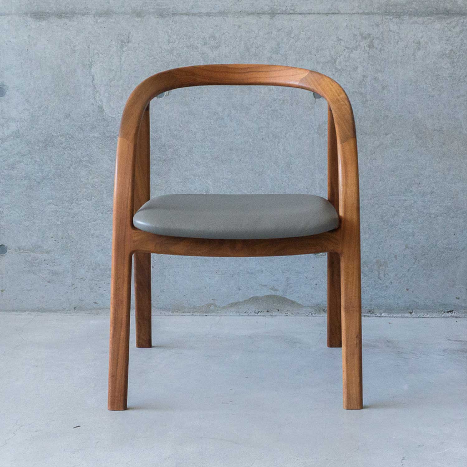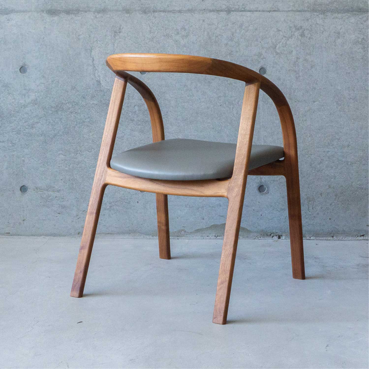 脚・肘・背もたれ等、木部のすべての断面が楕円となっています。ひねりを加えてひとつなぎとなったフレームはずっと撫でていたくなるほどなめらかで抜群の座り心地です。