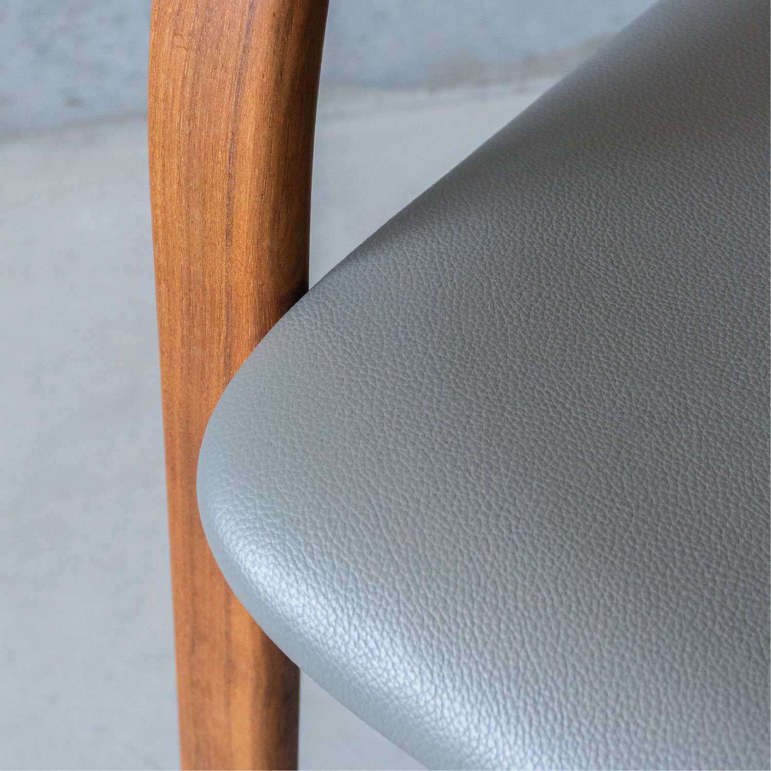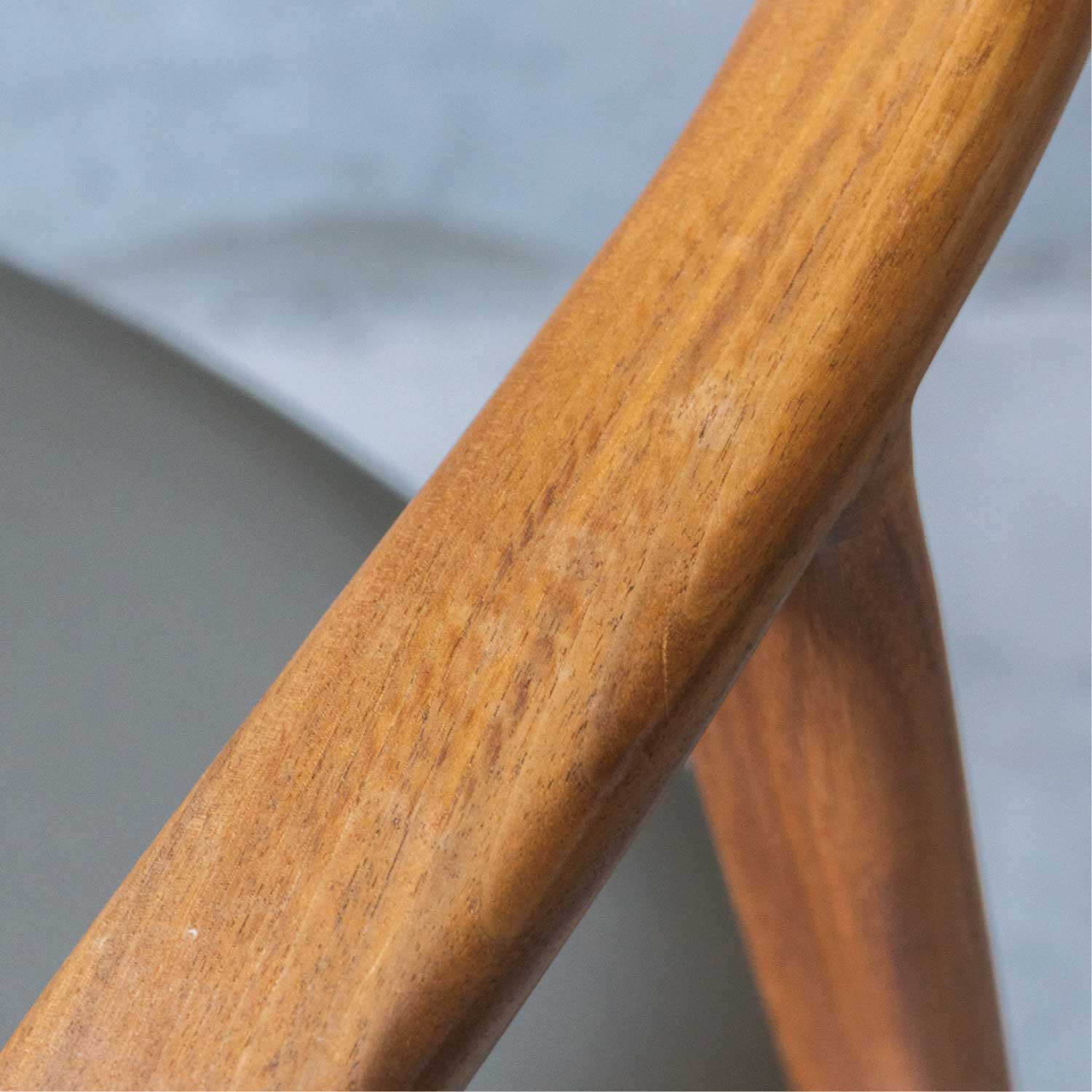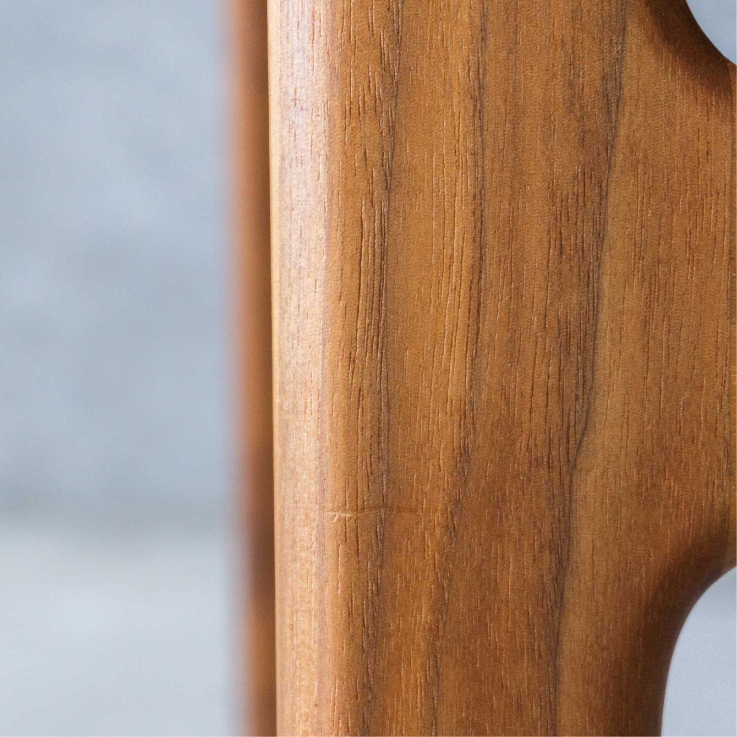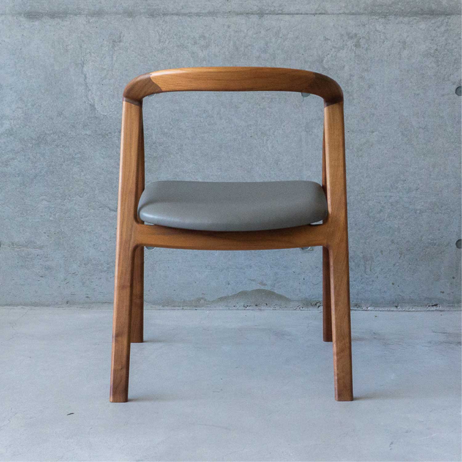 脚・肘・背もたれ等、木部のすべての断面が楕円となっています。ひねりを加えてひとつなぎとなったフレームはずっと撫でていたくなるほどなめらかで抜群の座り心地です。