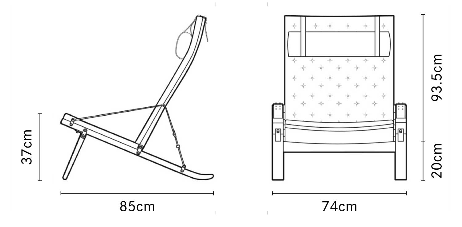 ラウンジチェアとしては非常に希なデザインと言えます。ちなみにプリコはイタリア語で折りたたむことを意味しています。