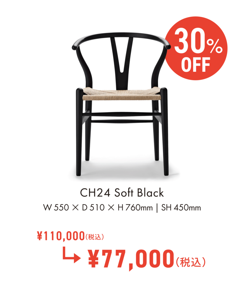 北欧を代表する名作チェア《Yチェア》のソフトブラック仕上げ。落ち着いた質感のブラックフレームと、ナチュラルなペーパーコードの対比が美しく、ダイニングはもちろん、ワークスペースにも映える一脚です。