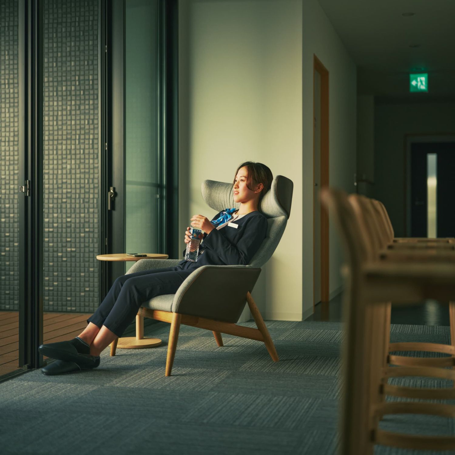 「リラックス空間」のメインには、素材の美しさとクラフトマンシップが際立つ『Ritzwell』のラウンジチェアを採用しました。