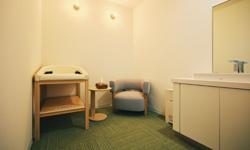 こちらは、授乳室となっており、他の空間より「寛ぐ」「安心」という面を重視し、親子でホッとできる空間となっております。