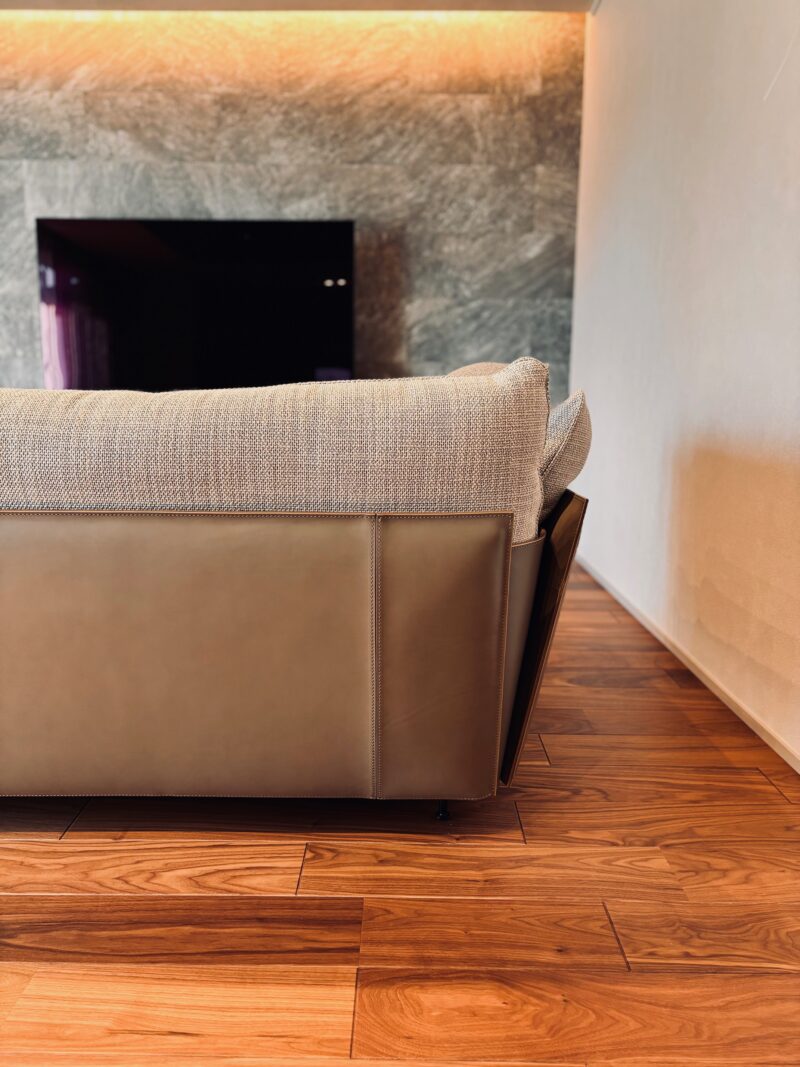 ゆったりとしたクッション使いが特徴で、厚革のシャープなフォルムに漂う浮遊感を味わえます。