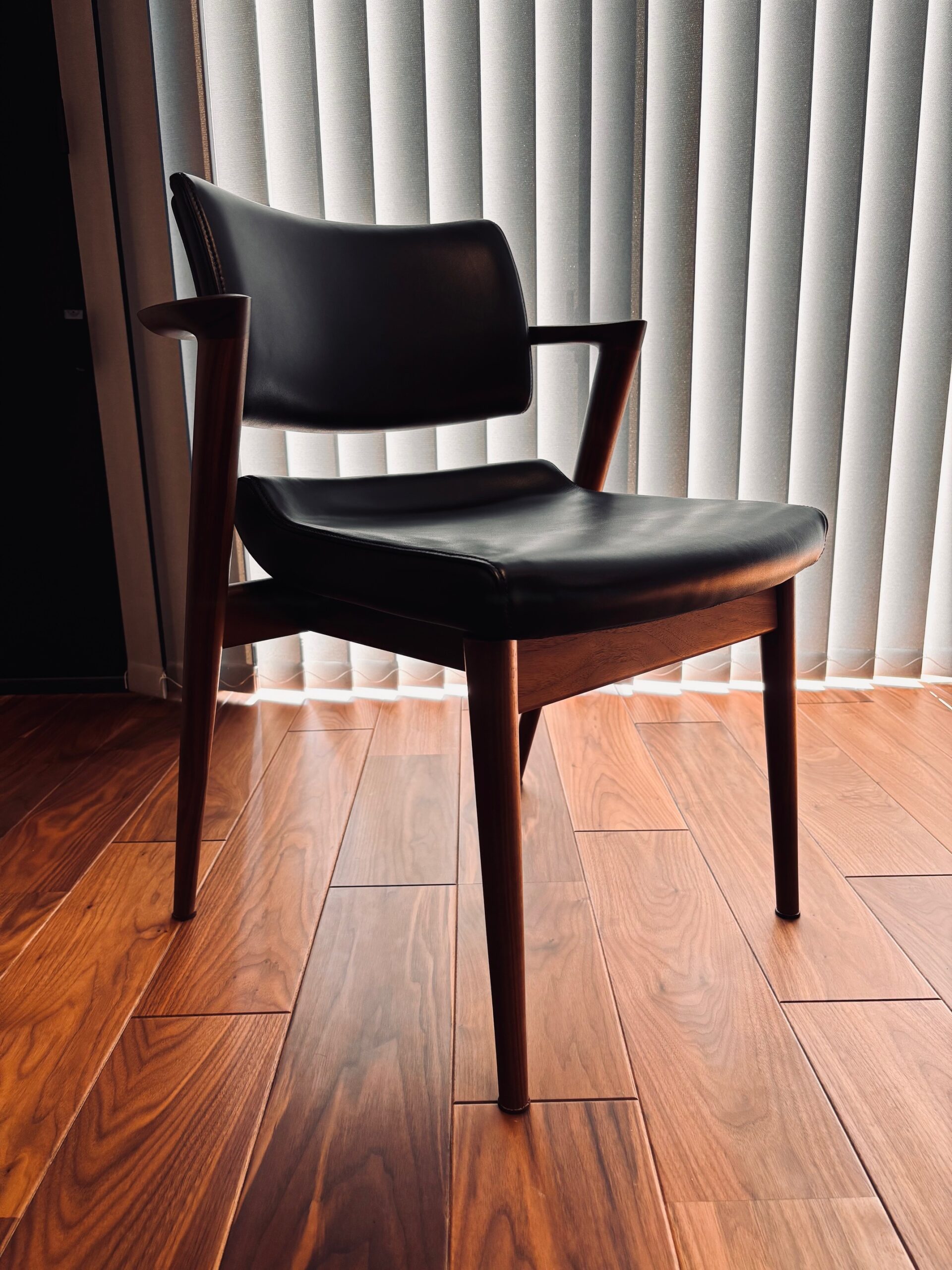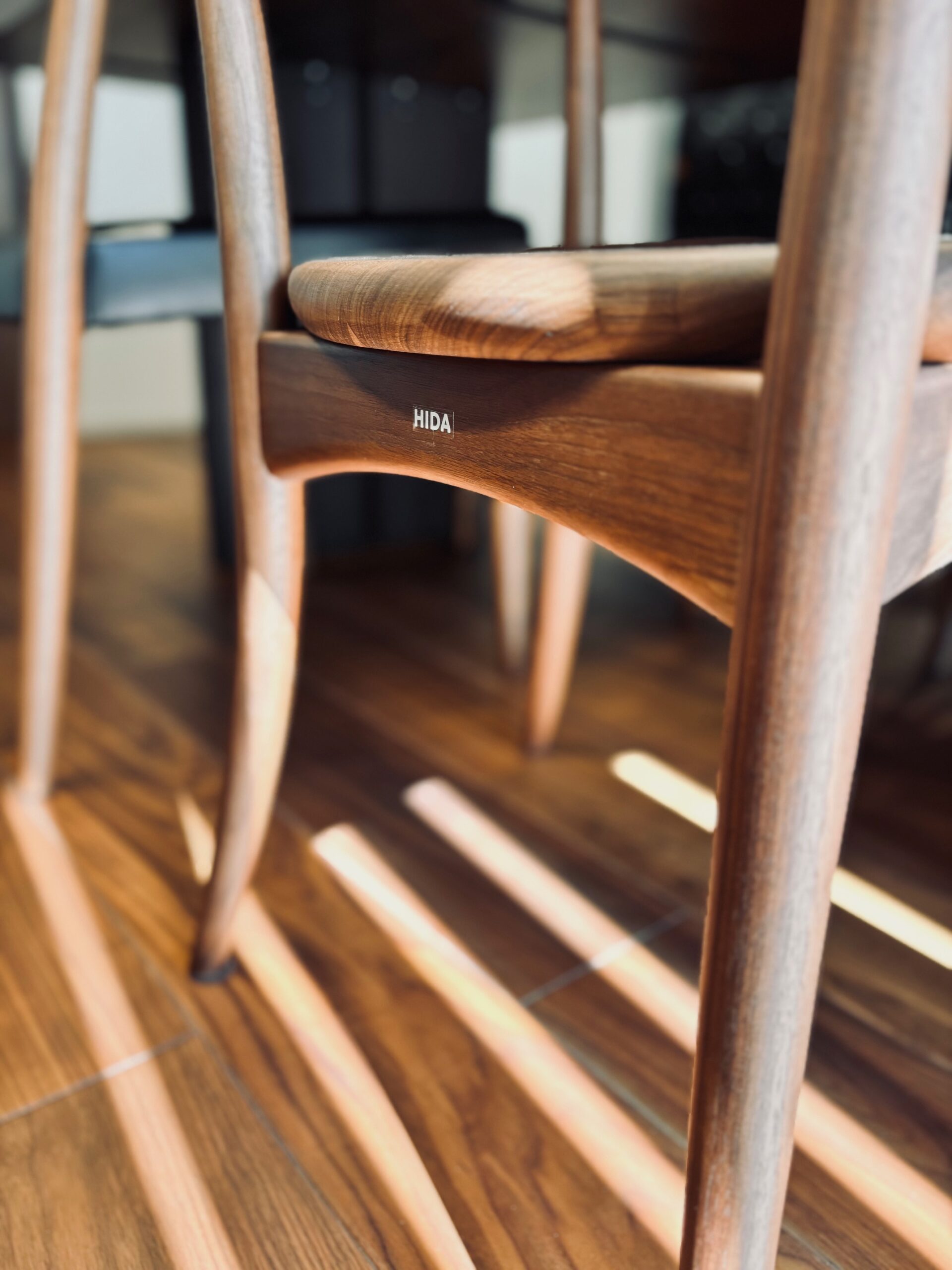 左奥:Ritzwell【KLINTアームレスチェア】 、左手前:Ritzwell【MARCELチェア】、右奥:飛騨産業【SEOTO-EXセミアームチェア】、右手前:飛騨産業【CRESCENTアームチェア】